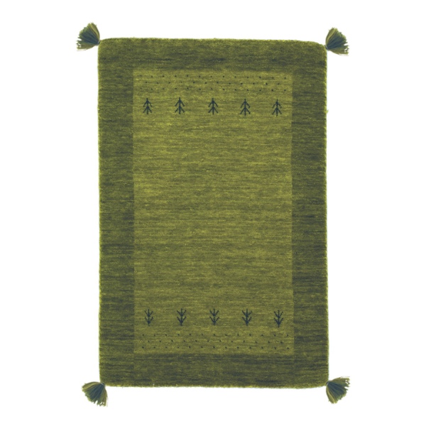 ラグ 200×200cm ラグマット ギャッベ LORRI BUFF ( カーペット 絨毯 マット ウール100% ハンドメイド 手織り おしゃれ オールシーズン フリンジ付き ギャベ リビング ソファ横 ベッドサイド ) 【 グリーン 】