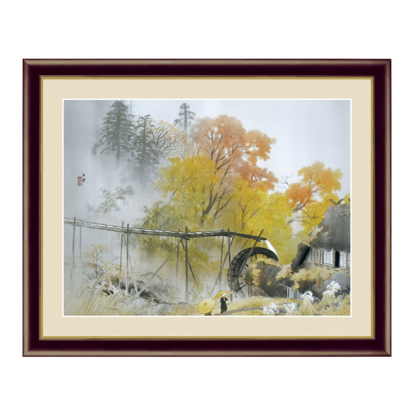 絵画 『彩雨』 42×52cm 川合玉堂 1940年 額入り 巧芸画 インテリア ( 壁掛け ポスター アートフレーム アートポスター 絵 風景画 和風 和室 和 秋 四季山水 水車 紅葉 川合 玉堂 玄関 廊下 壁飾り 店舗 )