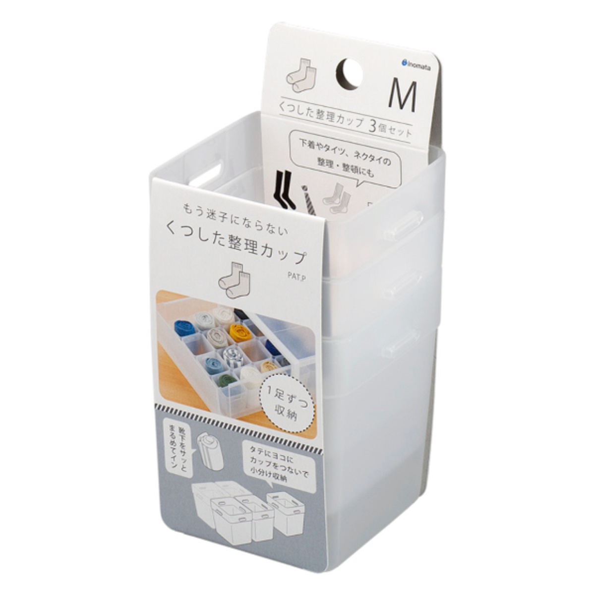 仕切りケース 幅7.4×奥行7.4×高さ8cm くつ下整理カップ M 3個入り 小物収納 ( 引き出し 収納ケース 仕切り 靴下 収納 インナーケース 引出し 整理整頓 プラスチック ケース 収納ボックス 整理 カップ 小物入れ くつ下 日本製 )