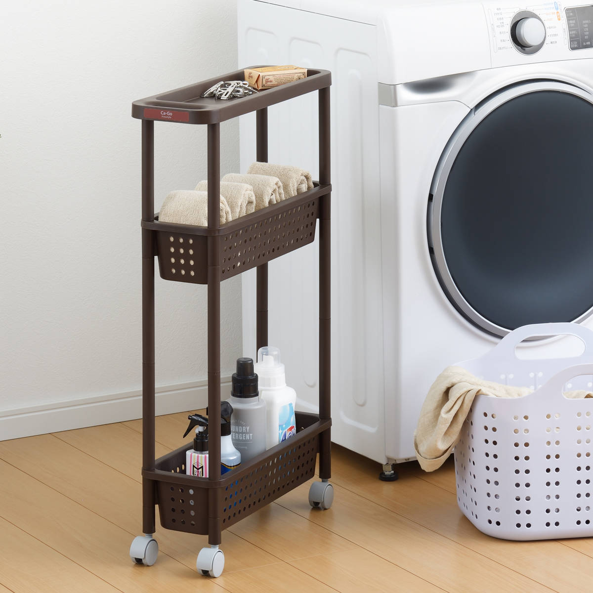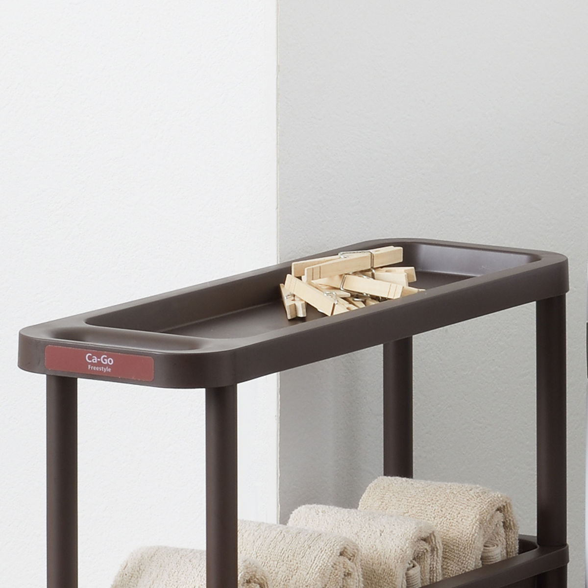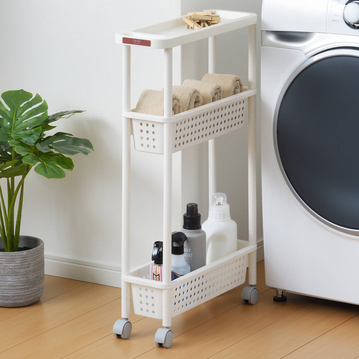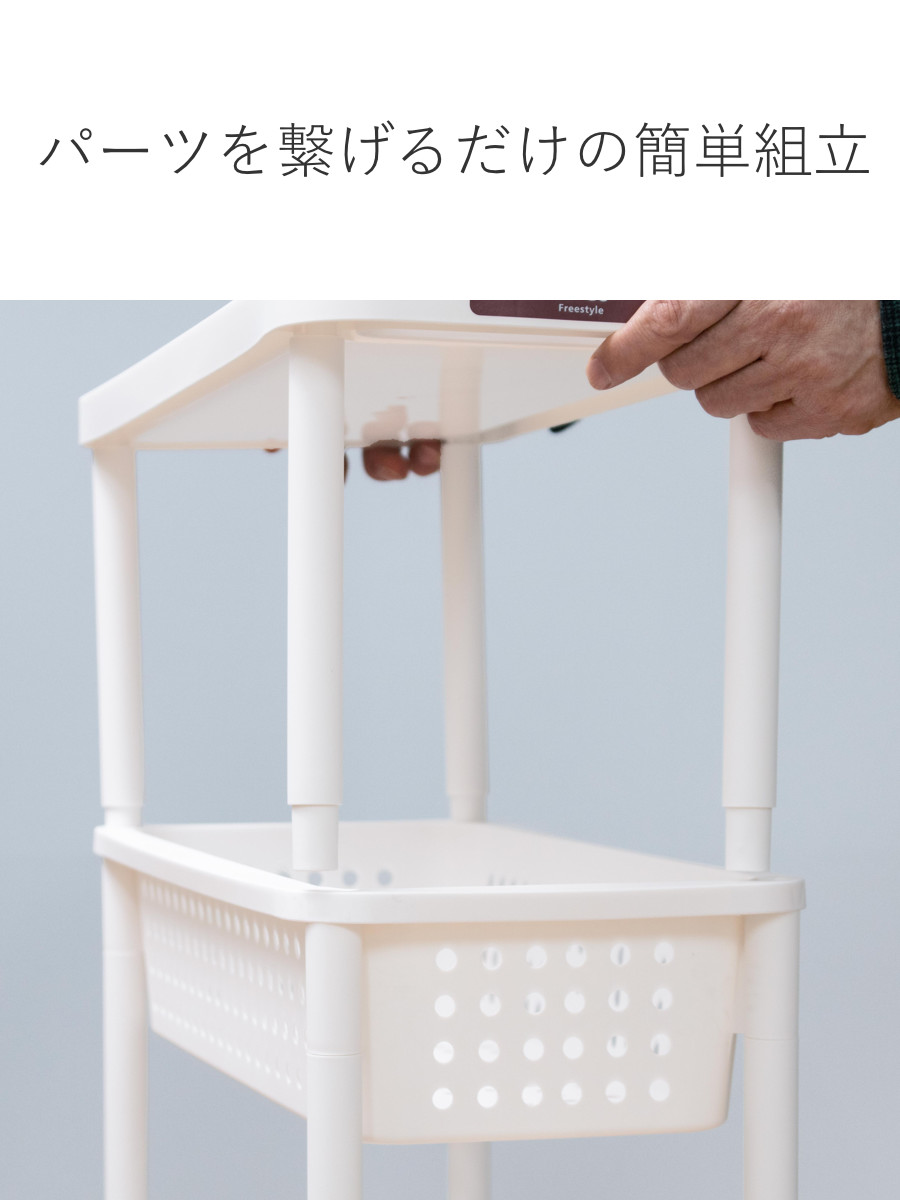 ランドリーなどの水回りでも安心して使えるポリプロピレン製です。タオルを置いたりシャンプーや洗剤などのボトルを収納してもOK。コンパクトなのでお部屋のちょっとしたスペースに置くことができます。
