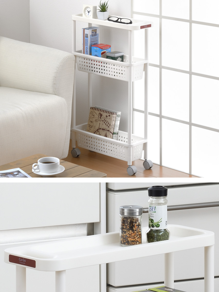 キッチンワゴン 3段 キャスター付き 幅16.5cm カーゴ2 スーパースリム ( キッチン収納 隙間収納 マルチワゴン キッチンラック スーパースリムワゴン スリム ランドリー収納 バスケットワゴン ワゴン収納 カーゴ 幅 16.5cm サンカ ) 【ホワイト】
