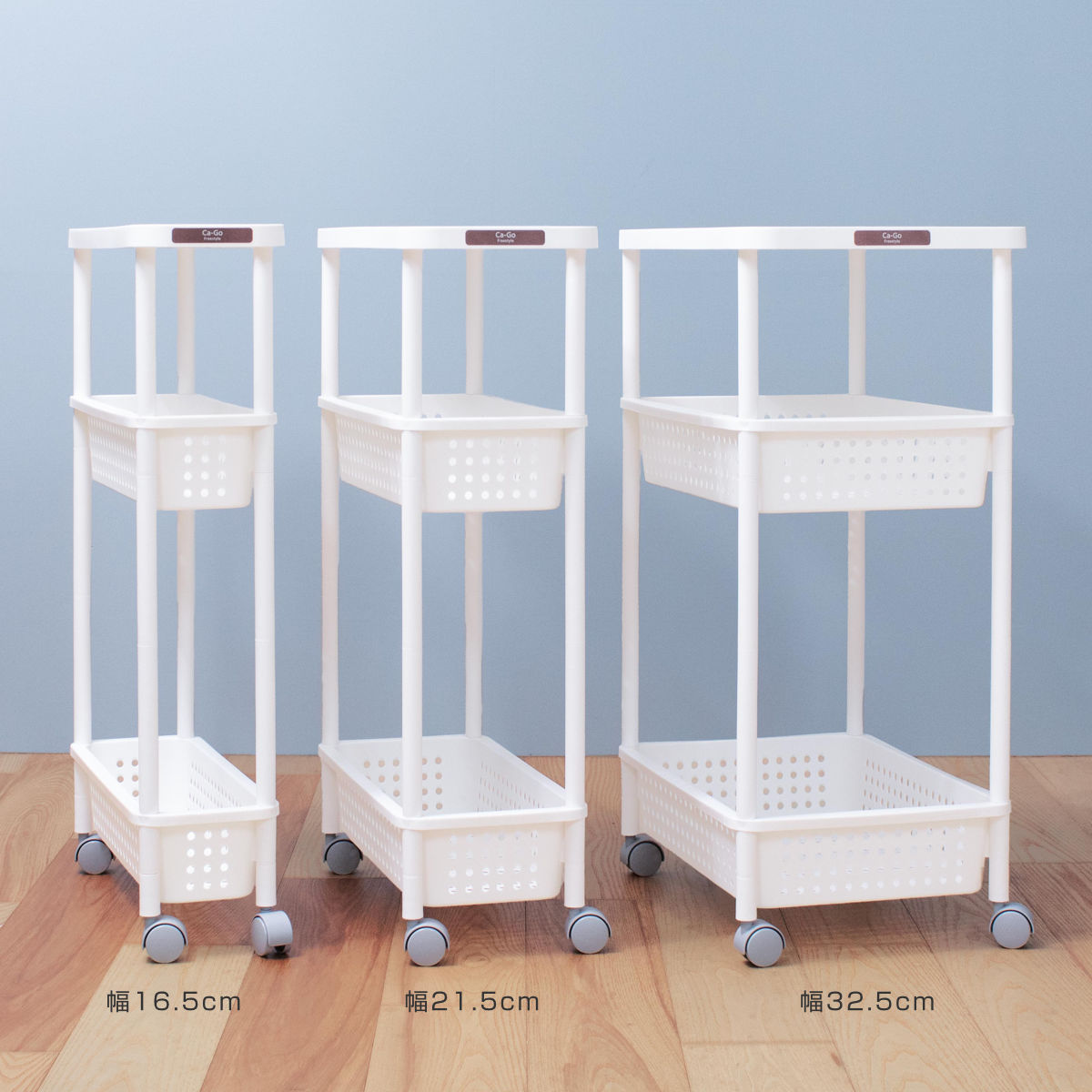 16.5/21.5/32.5cmの3つの幅のサイズがあり、それぞれ3段・4段タイプからお選びいただけます。設置スペースや用途に合わせて、ぴったりのサイズが見つかります。