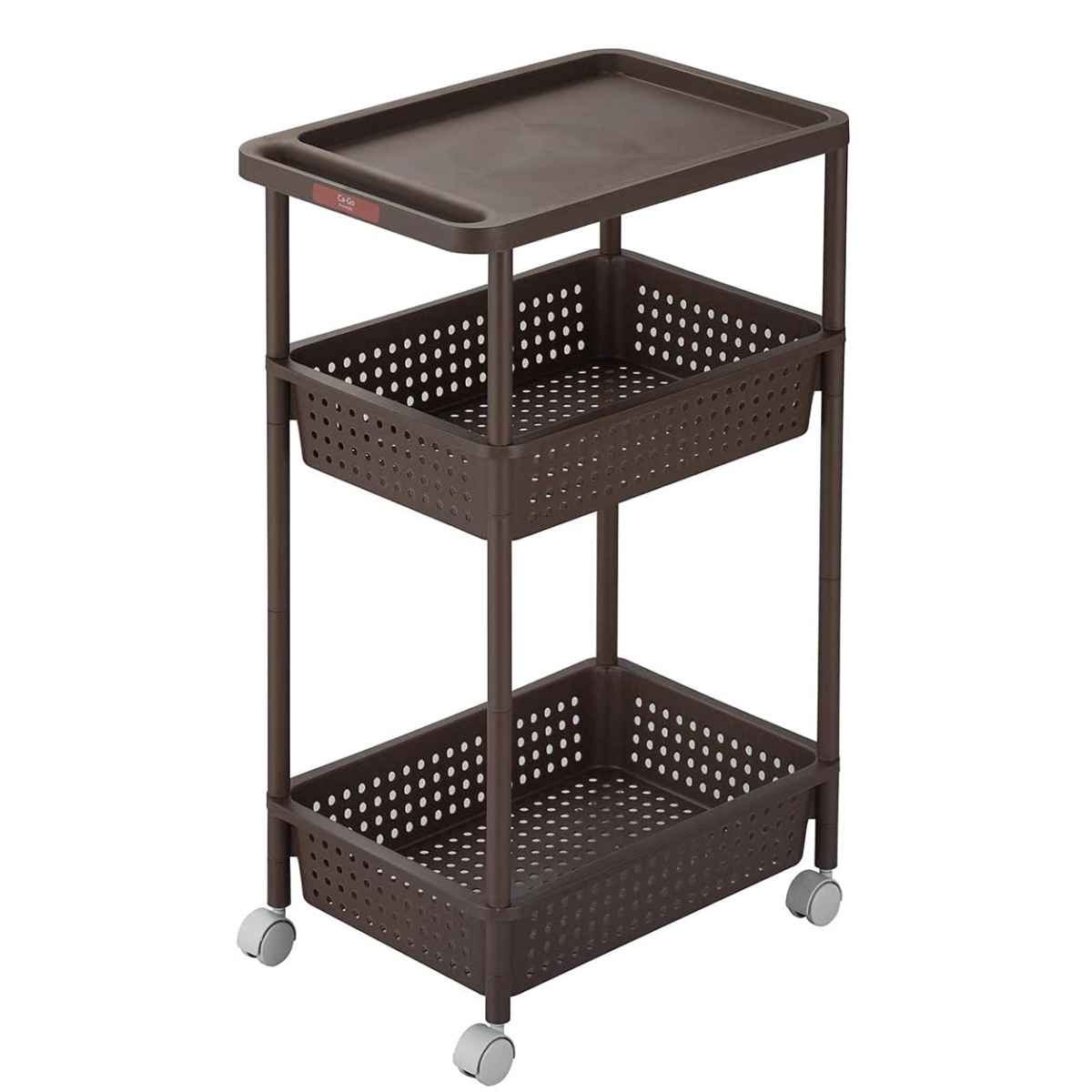キッチンワゴン 3段 キャスター付き 幅32.5cm カーゴ2 ワイド ( キッチン収納 隙間収納 マルチワゴン キッチンラック ワイドワゴン ランドリー収納 バスケットワゴン ワゴン収納 カーゴ 幅 32..5cm サンカ ) 【ブラウン】