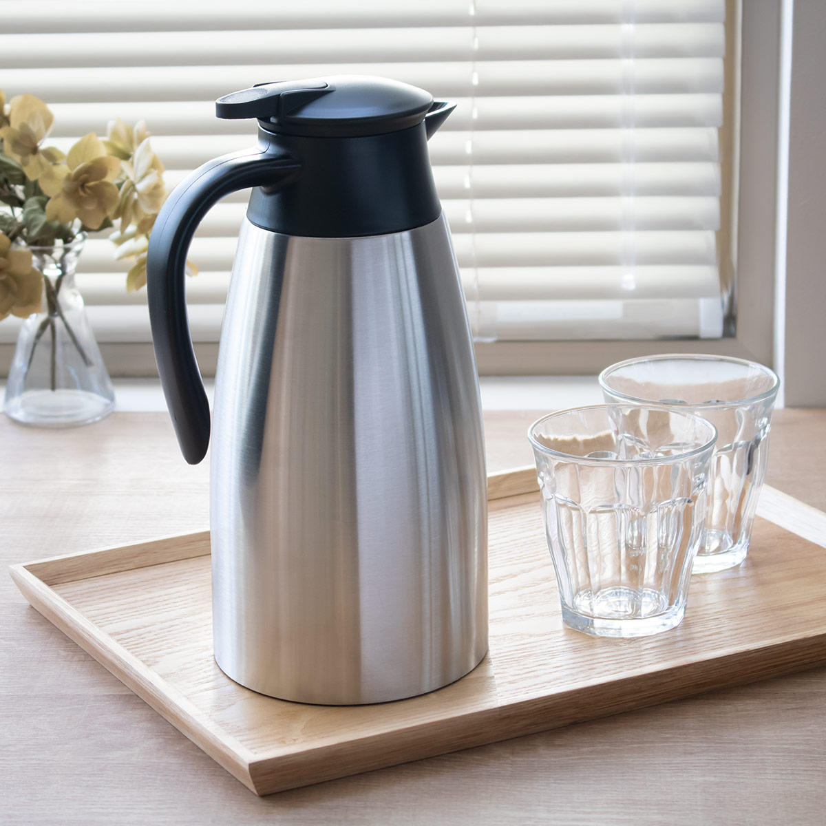 ポット 卓上ポット 2L 真空二重構造 ワンプッシュ ( テーブルポット 保温 保冷 魔法瓶 コードレス ステンレス 取っ手付き 卓上 ステンレスポット ピッチャー まほうびん 保温保冷 持ち手 ステンレス製 )
