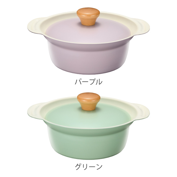 パステルカラーがかわいらしい色合いの「プチなべシリーズ」にはパープルとグリーンの2色ございます。食卓をパッと華やかにするので、キッチンインテリアのアクセントにもなります。夜食用、一人暮らし用にとちょっと調理したい時、また同シリーズで揃えれば、引越し祝いや結婚祝いのギフトとしてもオススメです。