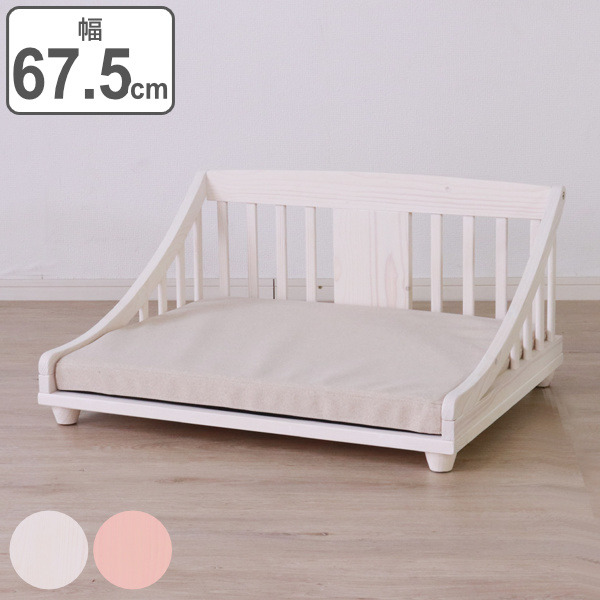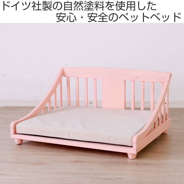 ペットベッド 幅67.5cm 木製 自然塗料 マット付き カバー付き ( ベッド ペット用 ペットベット ペット 猫 犬 ミニベッド イヌ ネコ コンパクト 天然木 ペット用品 ペット家具 ねこ いぬ ソファー ミニソファ ソファ ) 【 ピンク 】