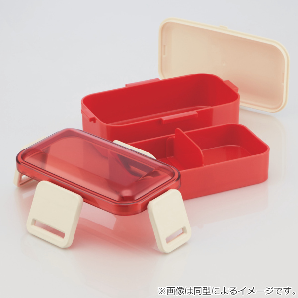 蓋がドーム型になっているので、おかずが潰れずにふんわり盛り付けることができます。ランチボックスは、仕切り付きでご飯とおかずがしっかり分けて入れられます。4点ロックで持ち運びも安心です。
