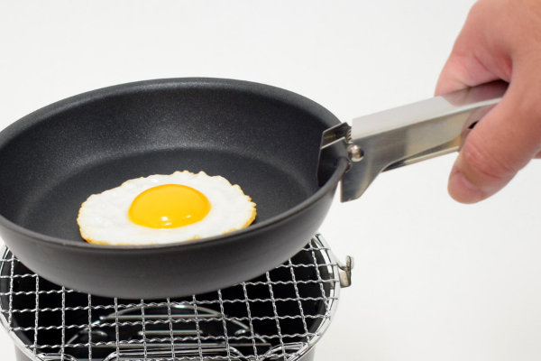 | 焼き網にしてBBQ 焼き網に交換してBBQを始めましょう。お肉を食べながら、炊き立てのふっくらご飯もいただけます。 | 朝食に便利なフライパン フライパン付きで、様々な料理が作れます。目玉焼き、オムレツ、焼きそばなど、朝食メニューに欠かせない家庭料理を外で作ることができます。 |