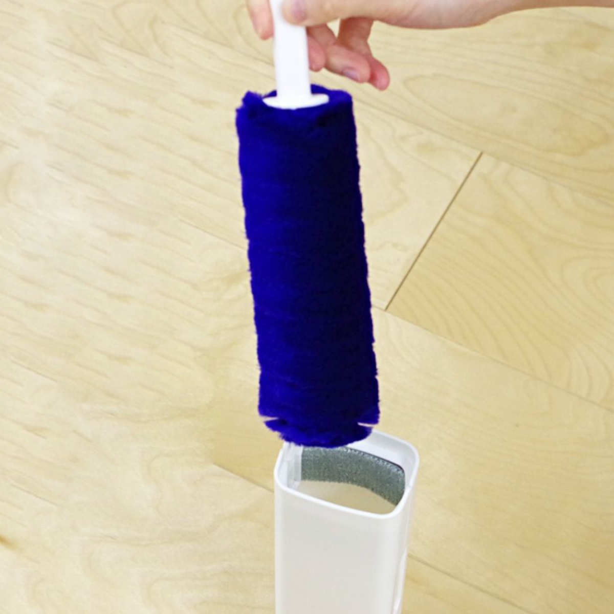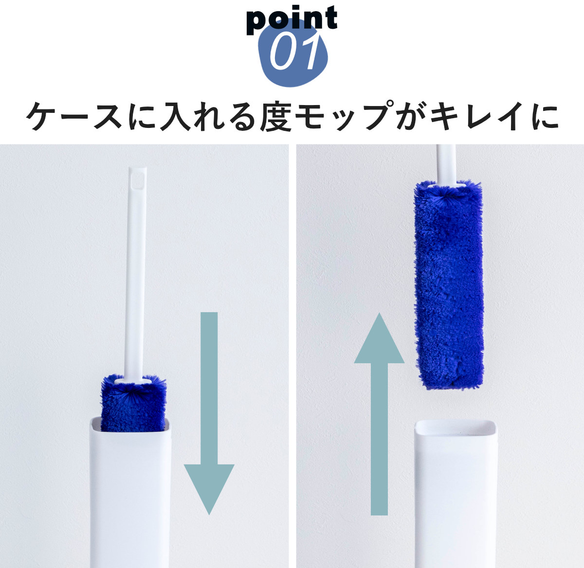 ケースに差し込むだけで、モップについたホコリが簡単に落ちます。ケースを持ち運びながら、掃除後のお手入れが手軽にできるので、いつでも気持ちよく繰り返し使えます。