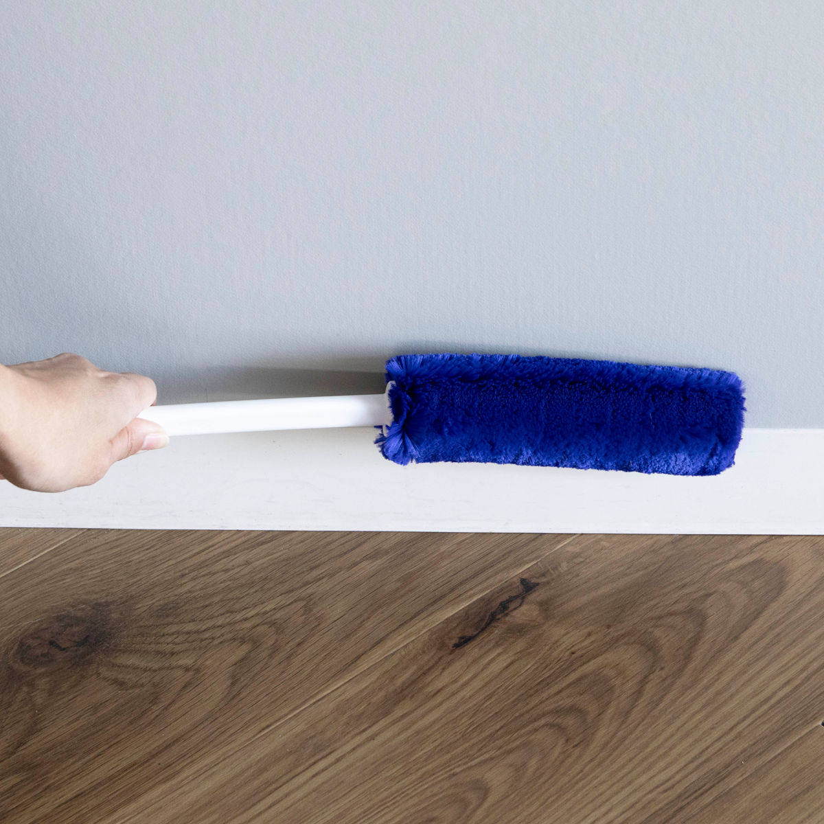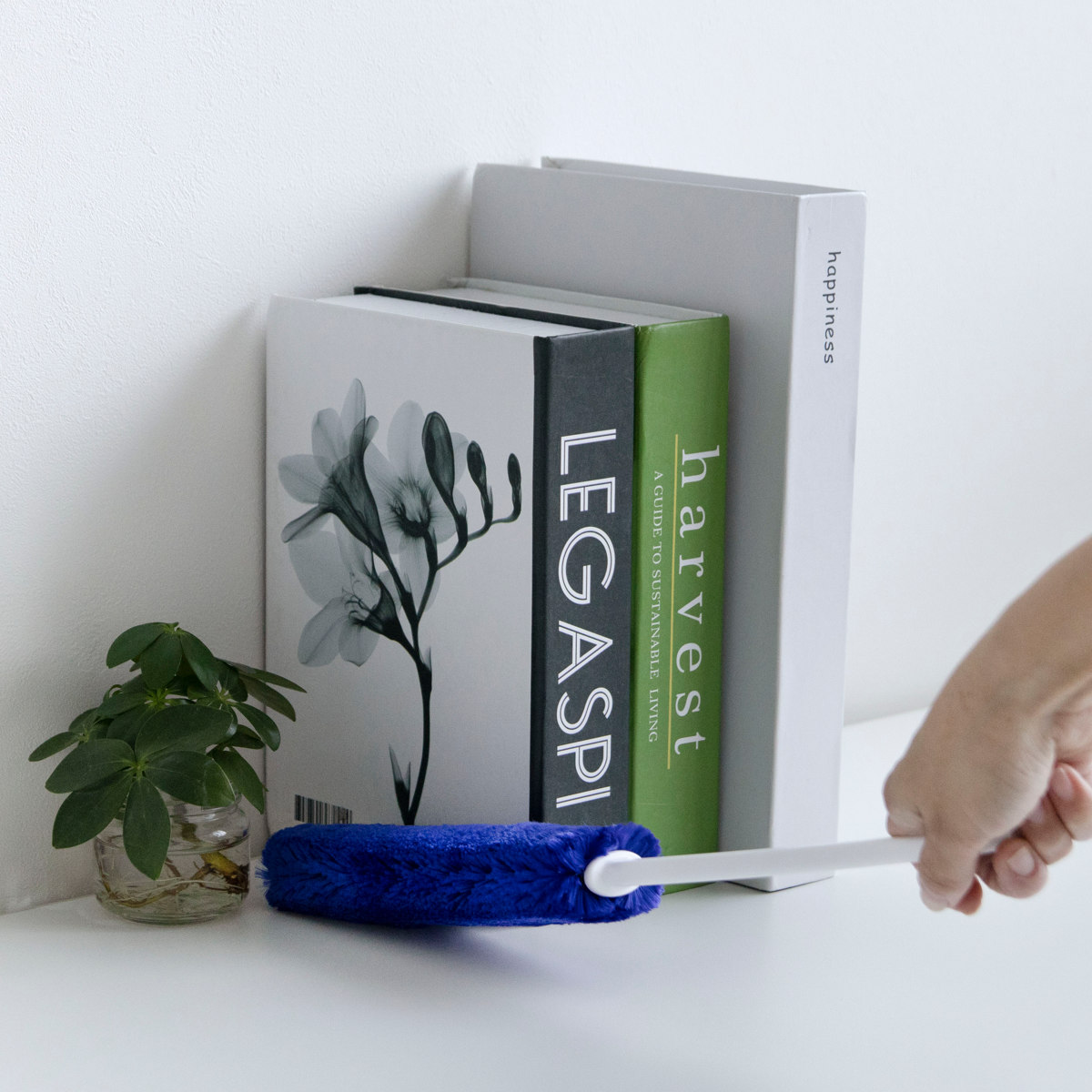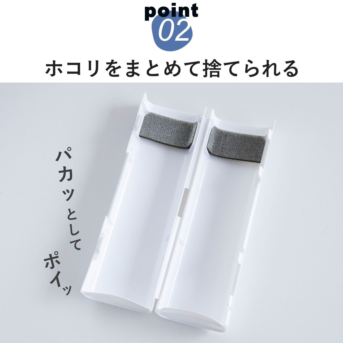 高密度繊維のモップが、細かなホコリまでしっかりキャッチ。 スリムな形状と程よいしなりで、テレビ台や本棚のすき間にもスッと入り込み、溜まった汚れをしっかり落とします。