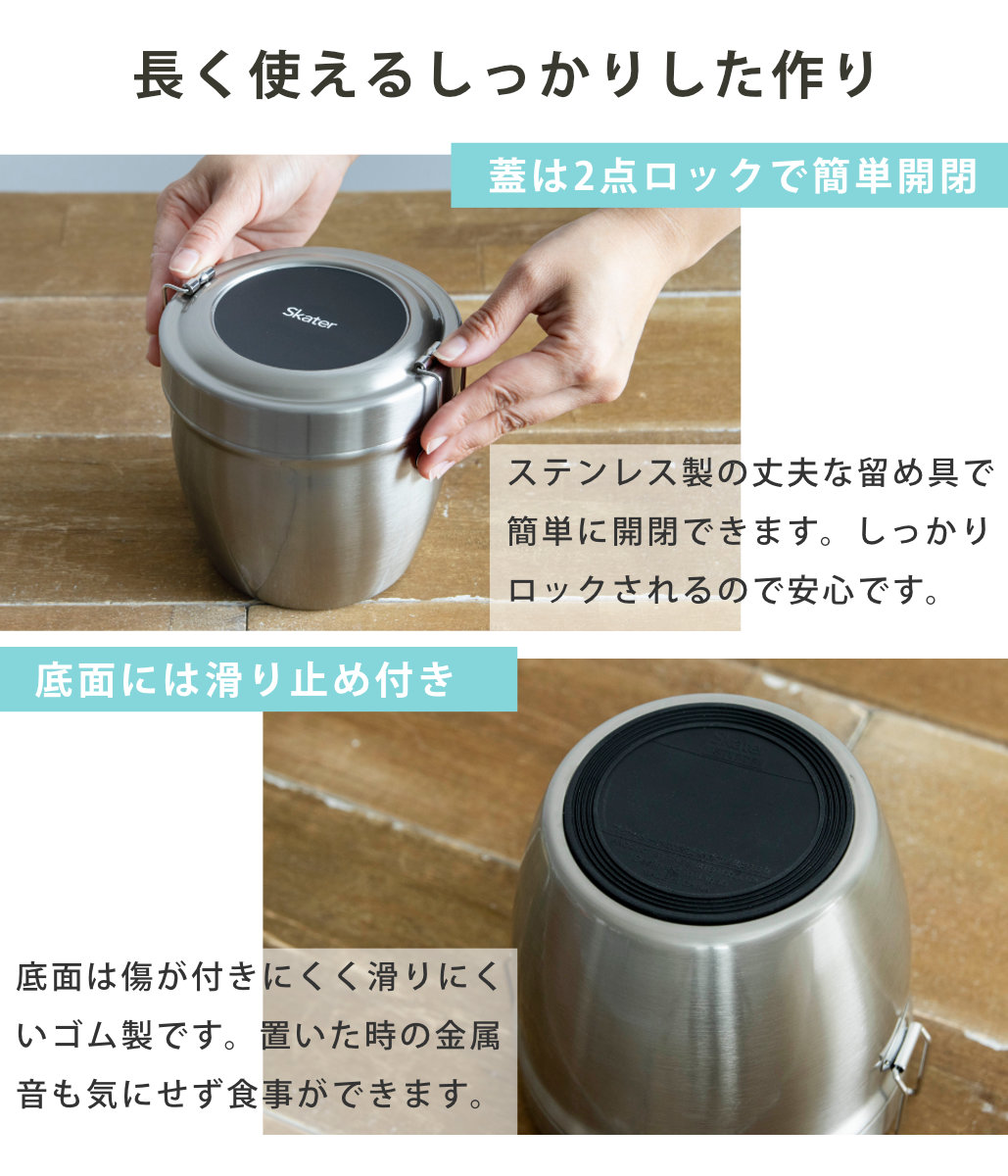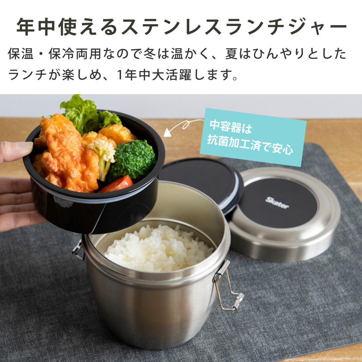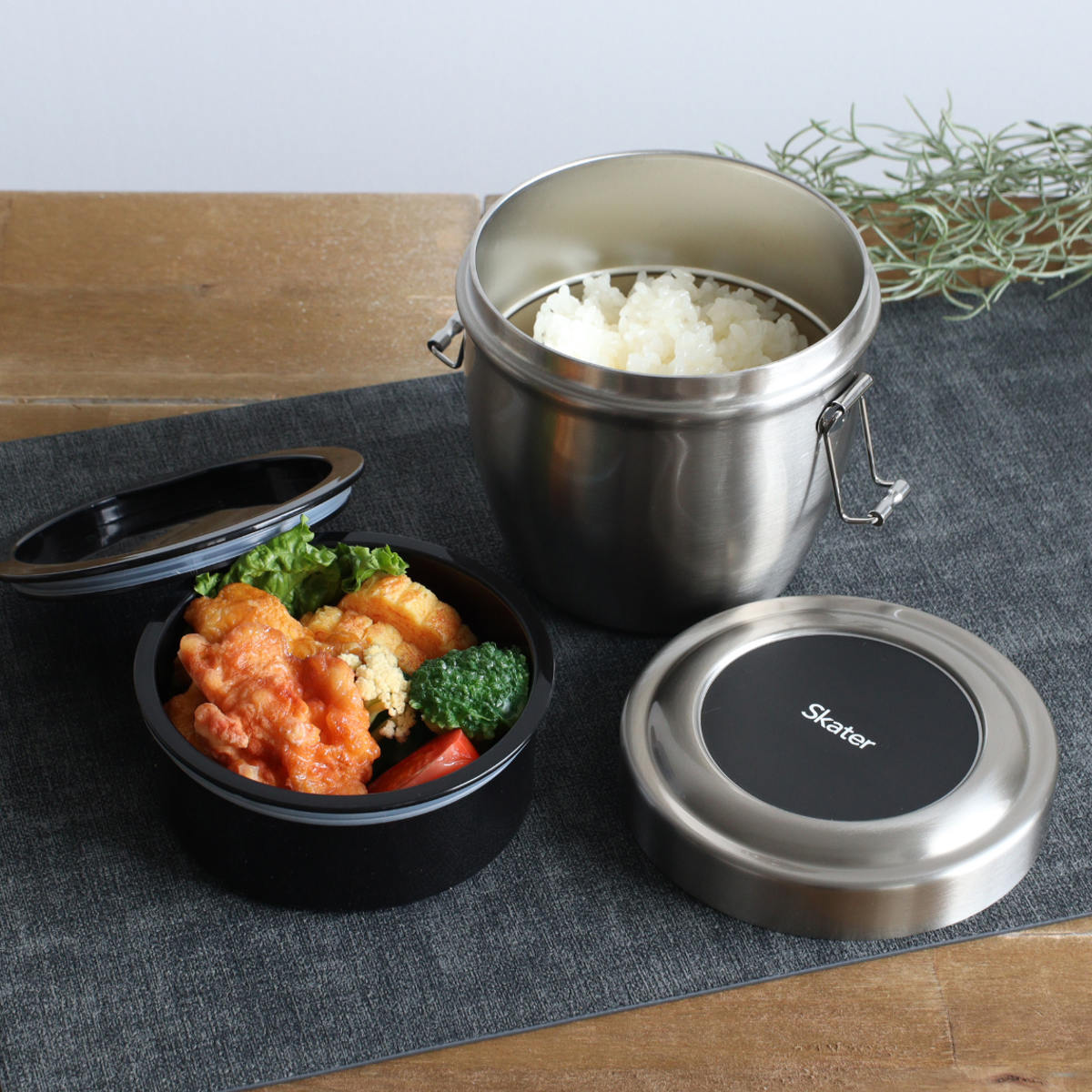 弁当箱 保温 抗菌 800ml 丼 真空ステンレス SKATER 保温弁当箱 ( レンジ対応 保冷 ランチジャー お弁当箱 2段 AG 銀 レンジOK 保冷弁当箱 丼ぶり お弁当 弁当 ランチボックス 二段 ) 【ベーシック】