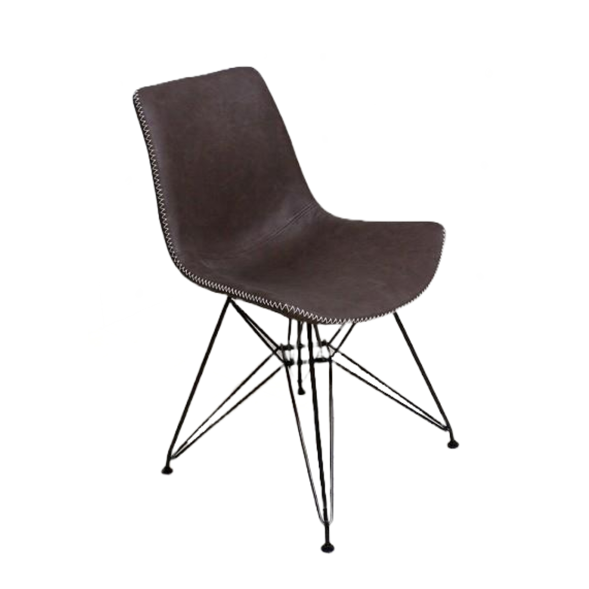 チェア 座面高46cm レザー調 ステッチ スチール脚 ( ダイニングチェア イス 椅子 チェアー リビングチェア 1人掛け 肘なし 食卓椅子 デスクチェア ダイニングチェアー おしゃれ ダイニング リビング 食卓 デザインチェア ) 【 ブラウン 】