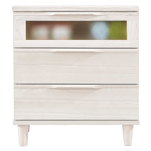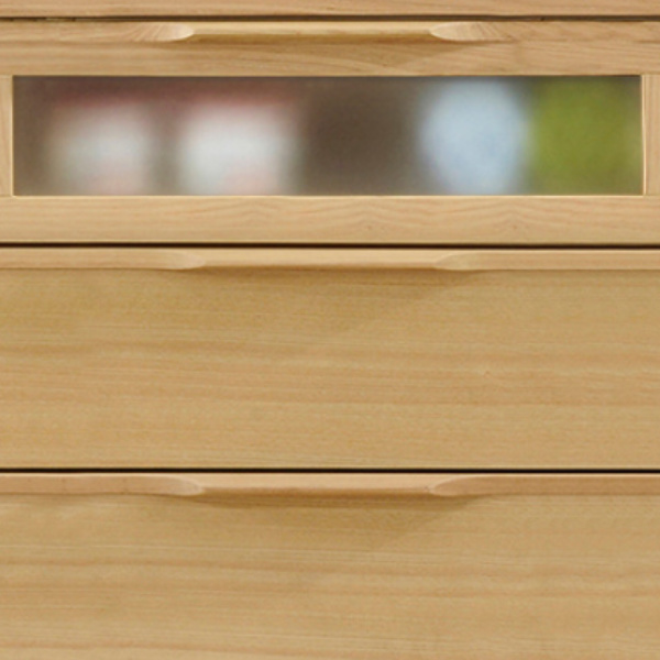 | 材質 | 天板:天然木突板 側板:プリント化粧板 ガラス入り引き出し前枠板:無垢材 引出し前板:天然木突板 取手:無垢材 脚部:無垢材 ガラス:ミストガラス 塗装:ウレタン樹脂塗装 |