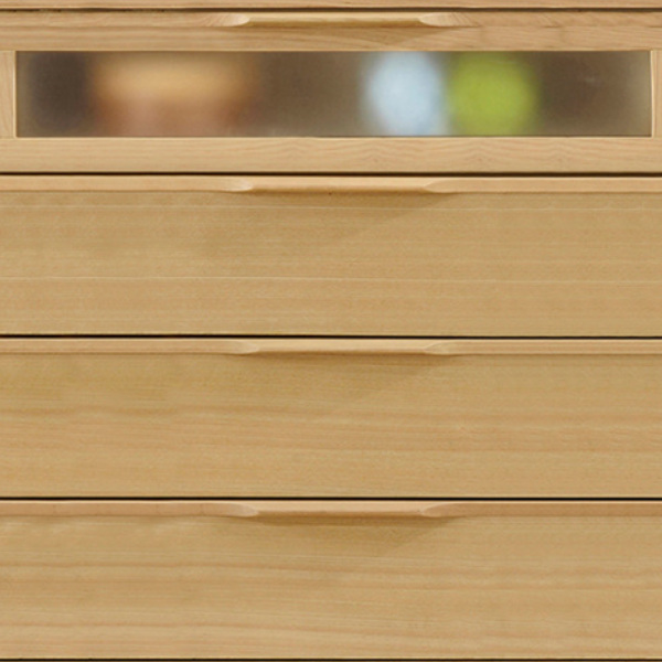 | 材質 | 天板:天然木突板 側板:プリント化粧板 ガラス入り引き出し前枠板:無垢材 引出し前板:天然木突板 取手:無垢材 脚部:無垢材 ガラス:ミストガラス 塗装:ウレタン樹脂塗装 |