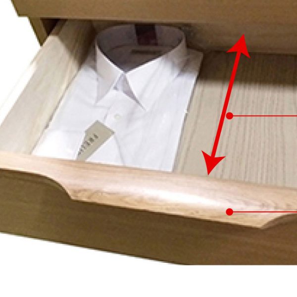 ●引出し内部のデッドスペースを最大限活用した、収納奥行き最大限のチェストです。