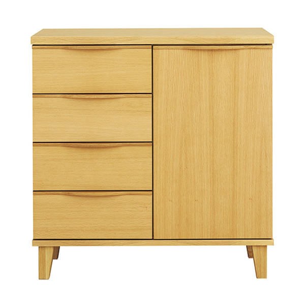 | 材質 | 天板・前板:オーク突板 側板・棚板・背板:プリント化粧板 取手・脚部:無垢材 塗装:ウレタン樹脂塗装 |