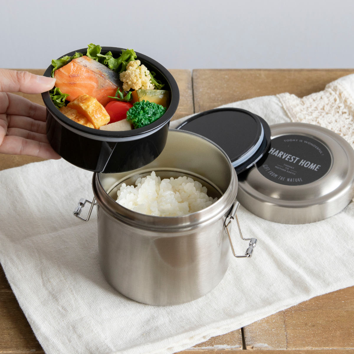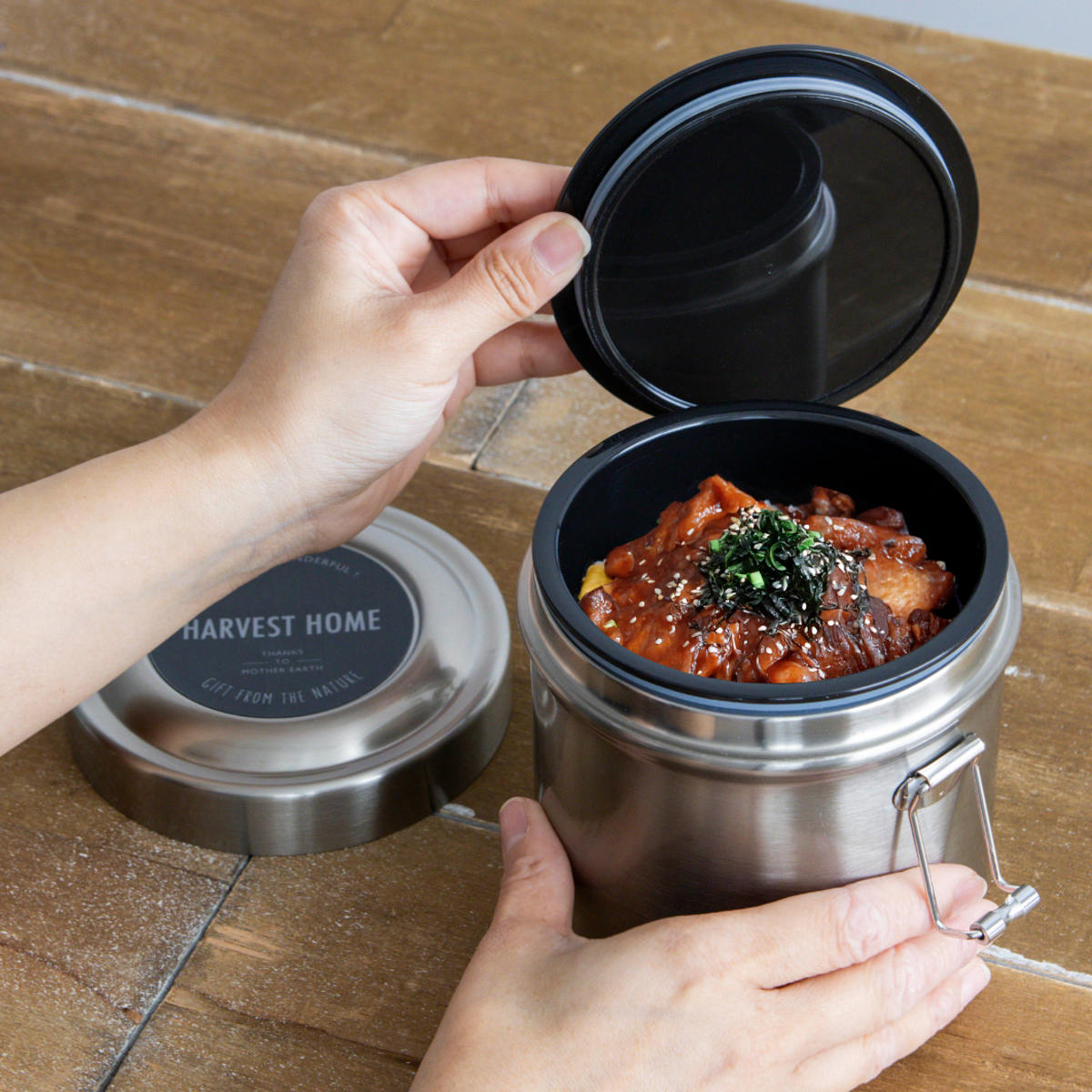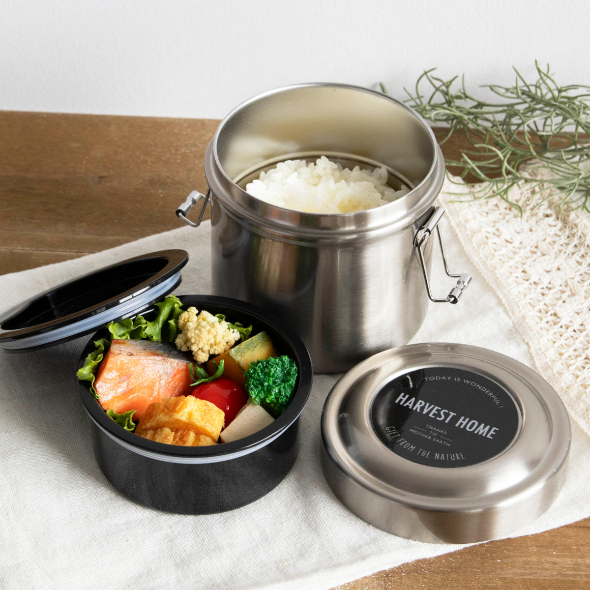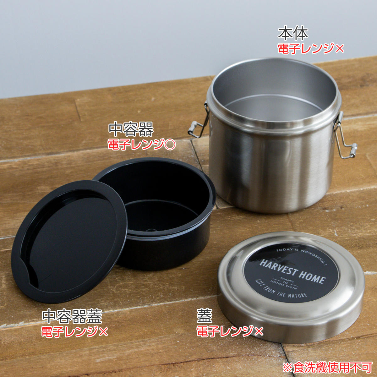 | 材質 | 中容器・中蓋:ポリプロピレン パッキン:シリコーン 底板:エラストマー 本体・蓋:ステンレス鋼(アクリル樹脂塗装) 留め具:ステンレス |