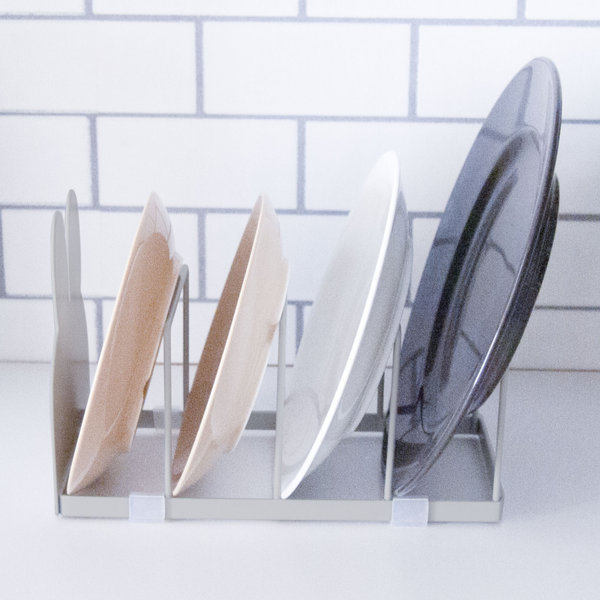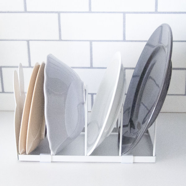 お皿の収納はもちろん、下にふきんや吸水マットを敷いて洗ったお皿を乾かすための一時置きにも。使わない時もキッチンに置いておくだけで可愛く、目立ちすぎないモノトーンの色使いも嬉しいポイントです。