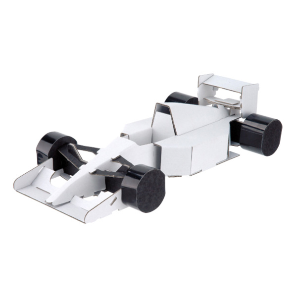 元はシンプルな白いダンボールなので、自由にお絵描きや色塗りを楽しめます。自分だけのオリジナルデザインのフォーミュラカーを作ることができます。