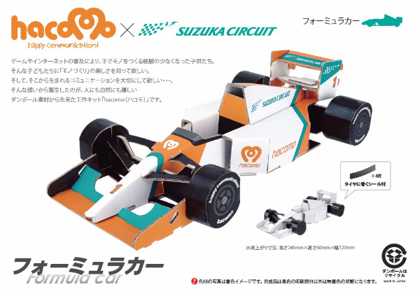 ●人にも自然にも優しいダンボール素材の工作キット「hacomo kids」シリーズのフォーミュラカーです。