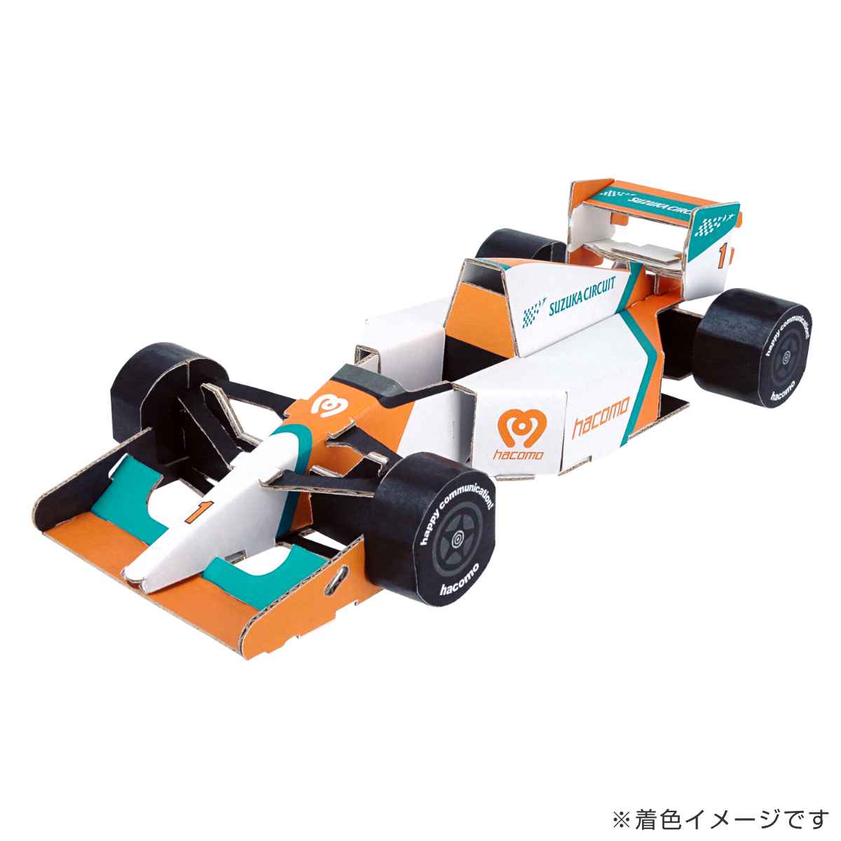 工作キット ダンボール製 hacomo kids フォーミュラカー ( ダンボール 段ボール 車 おもちゃ ペーパークラフト 工作 子ども キッズ 組み立て 手作り キット 組立 作る 簡単 リサイクル エコ 立体的 本格的 お絵描き 色塗り )