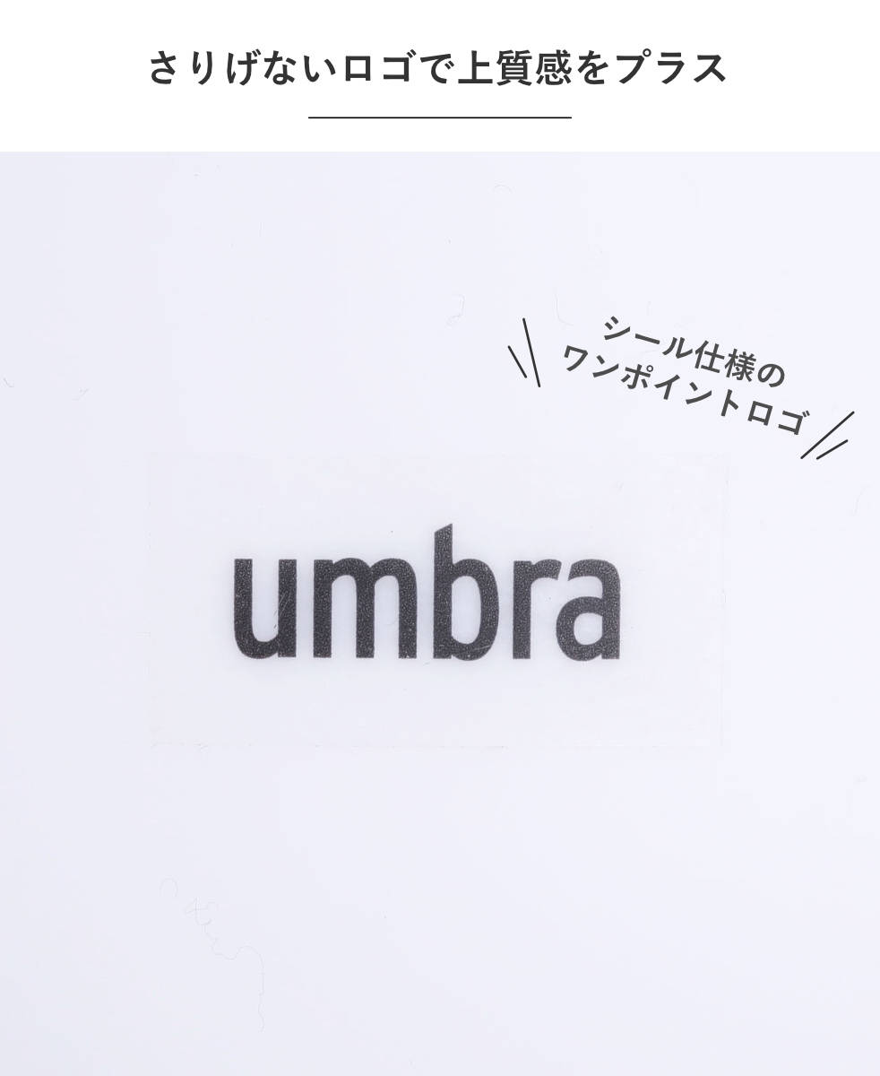 ワンポイントで入ったumbraのロゴが、シンプルな中にさりげないアクセントをプラス。主張しすぎず、空間に自然になじみます。ロゴはシール仕様で、剥がして無地の状態でもお使いいただけます。