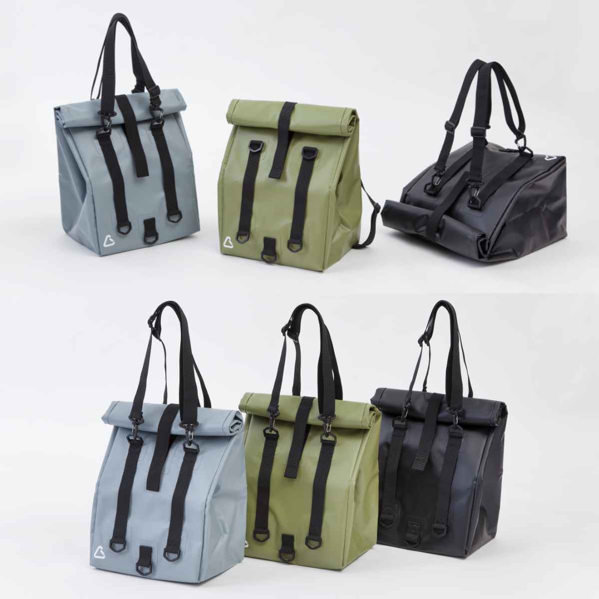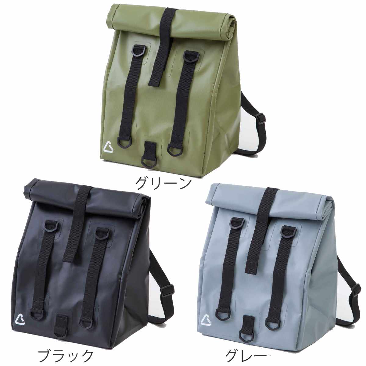 しっかり自立する丈夫な素材で、荷物の出し入れがしやすいのも魅力です。カラーはグリーン・ブラック・グレーのベーシックな3色展開で、どんなコーデにも合わせやすく、日常使いしやすいデザインです。