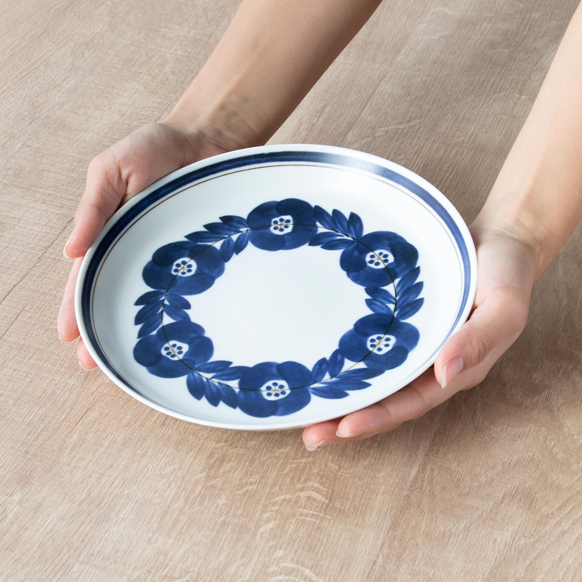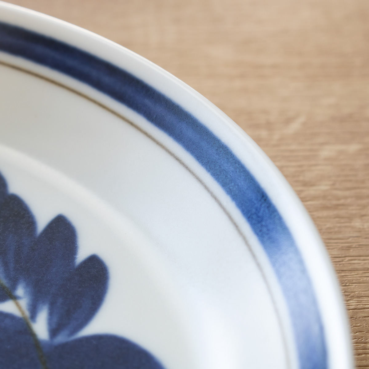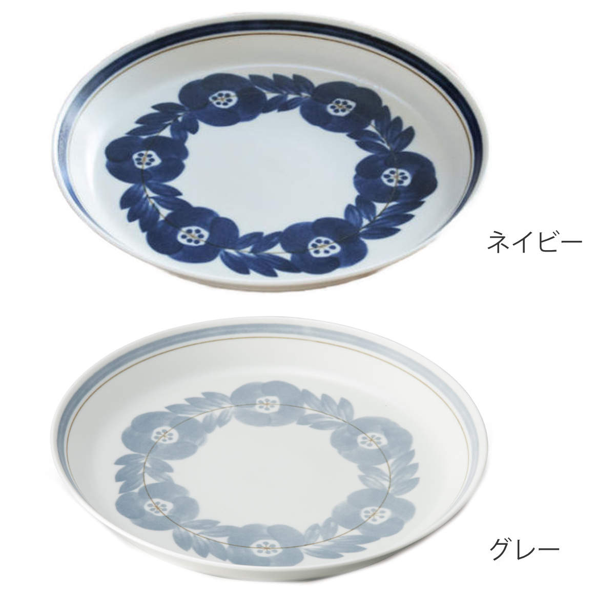 プレート 20cm ブロッサム 磁器 美濃焼 ( 食洗機対応 電子レンジ対応 日本製 皿 中皿 丸 平皿 お皿 取皿 盛皿 手描き風 花 デザートプレート サラダ ケーキ デザート パン おしゃれ 単品 1枚 ) 【ネイビー】