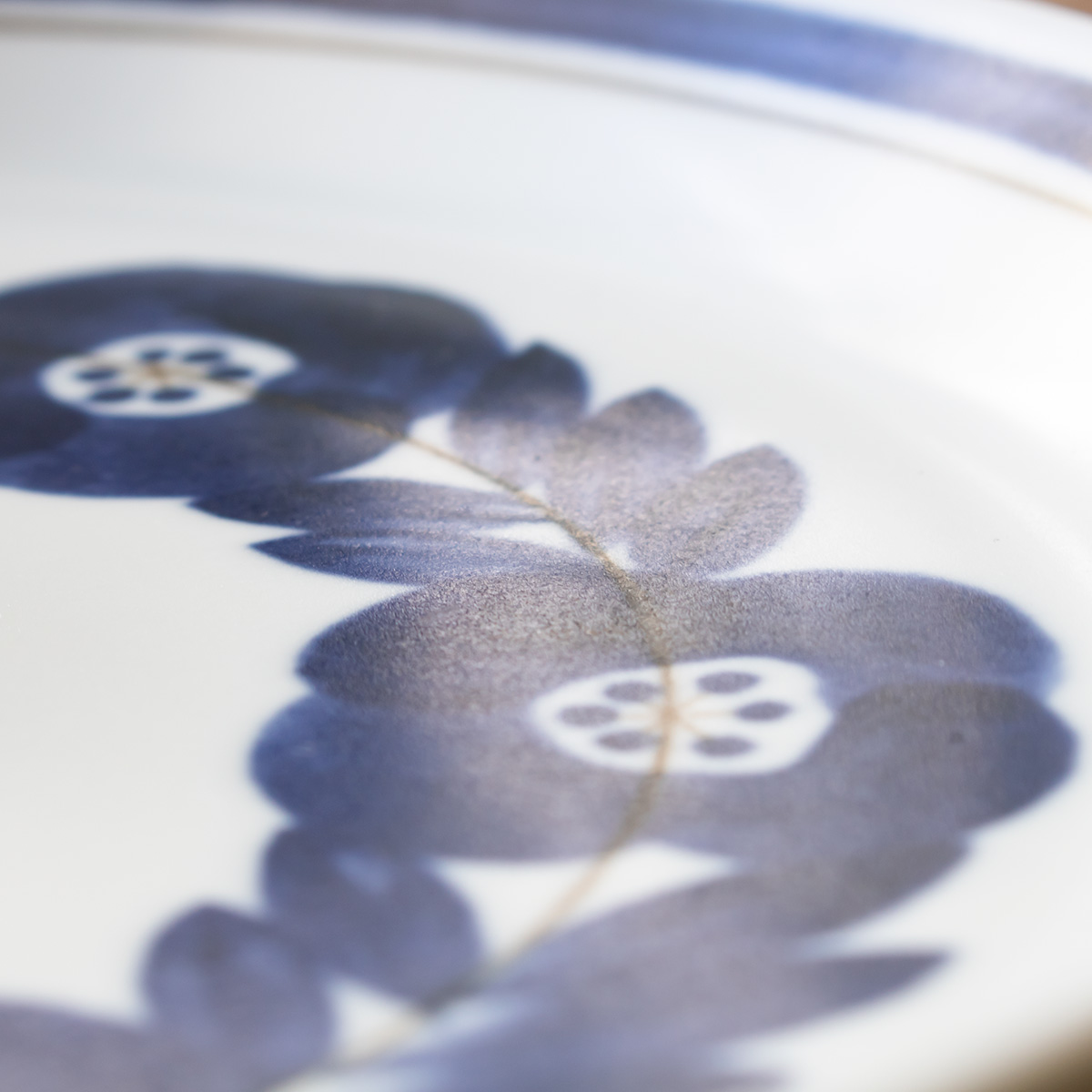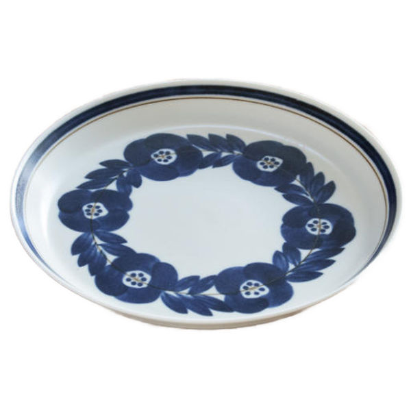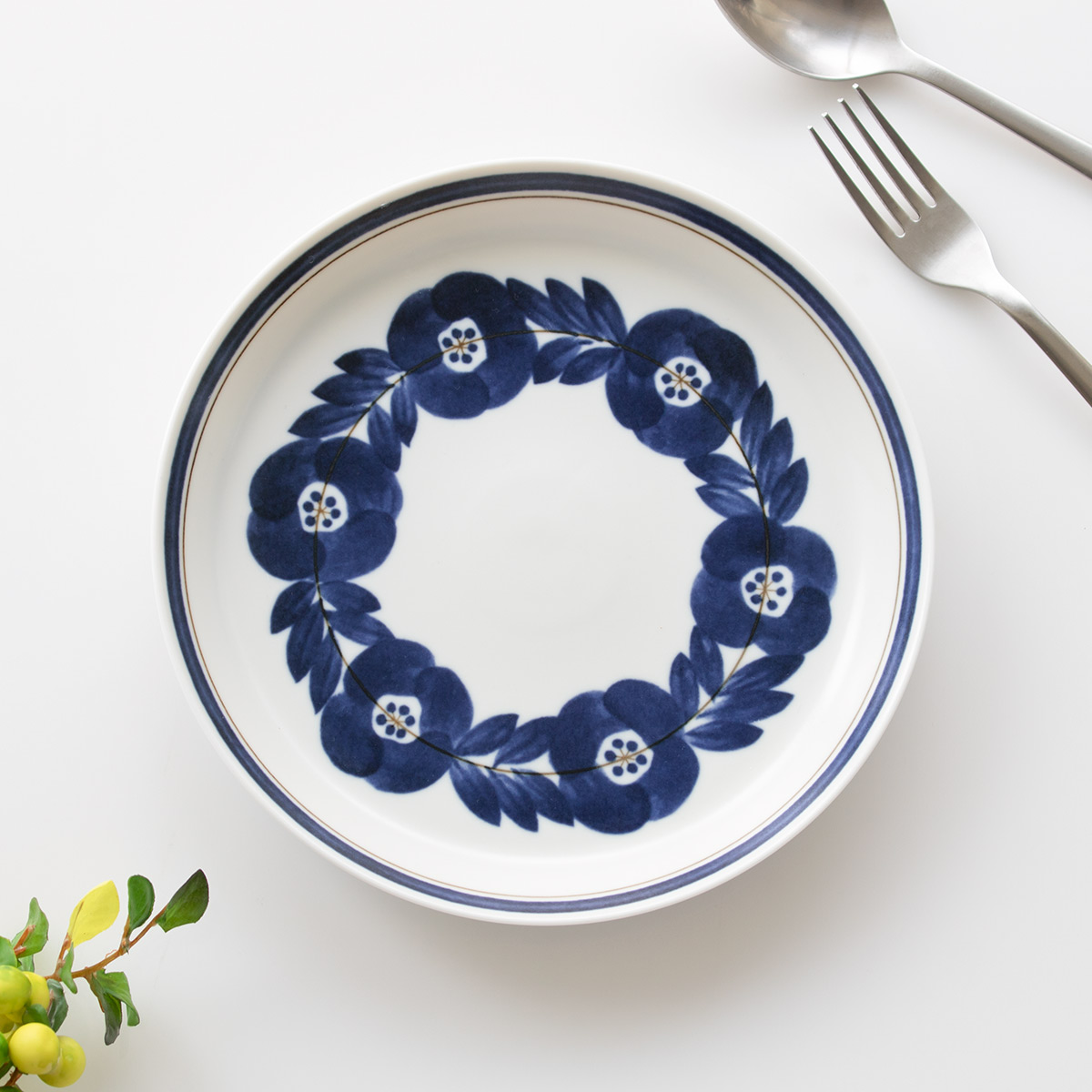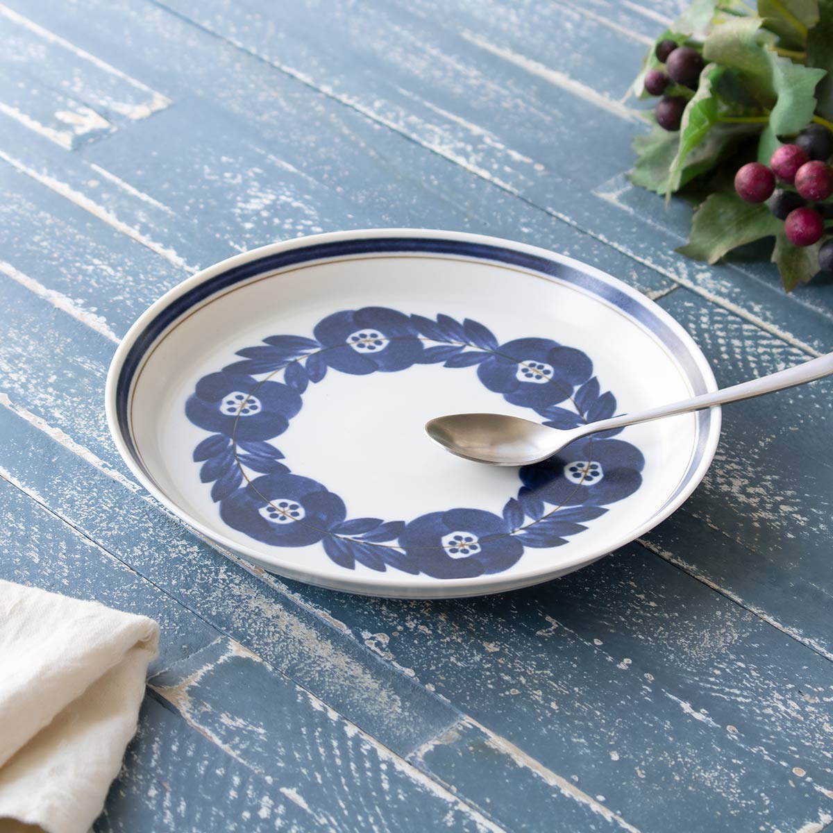 プレート 20cm ブロッサム 磁器 美濃焼 ( 食洗機対応 電子レンジ対応 日本製 皿 中皿 丸 平皿 お皿 取皿 盛皿 手描き風 花 デザートプレート サラダ ケーキ デザート パン おしゃれ 単品 1枚 ) 【ネイビー】
