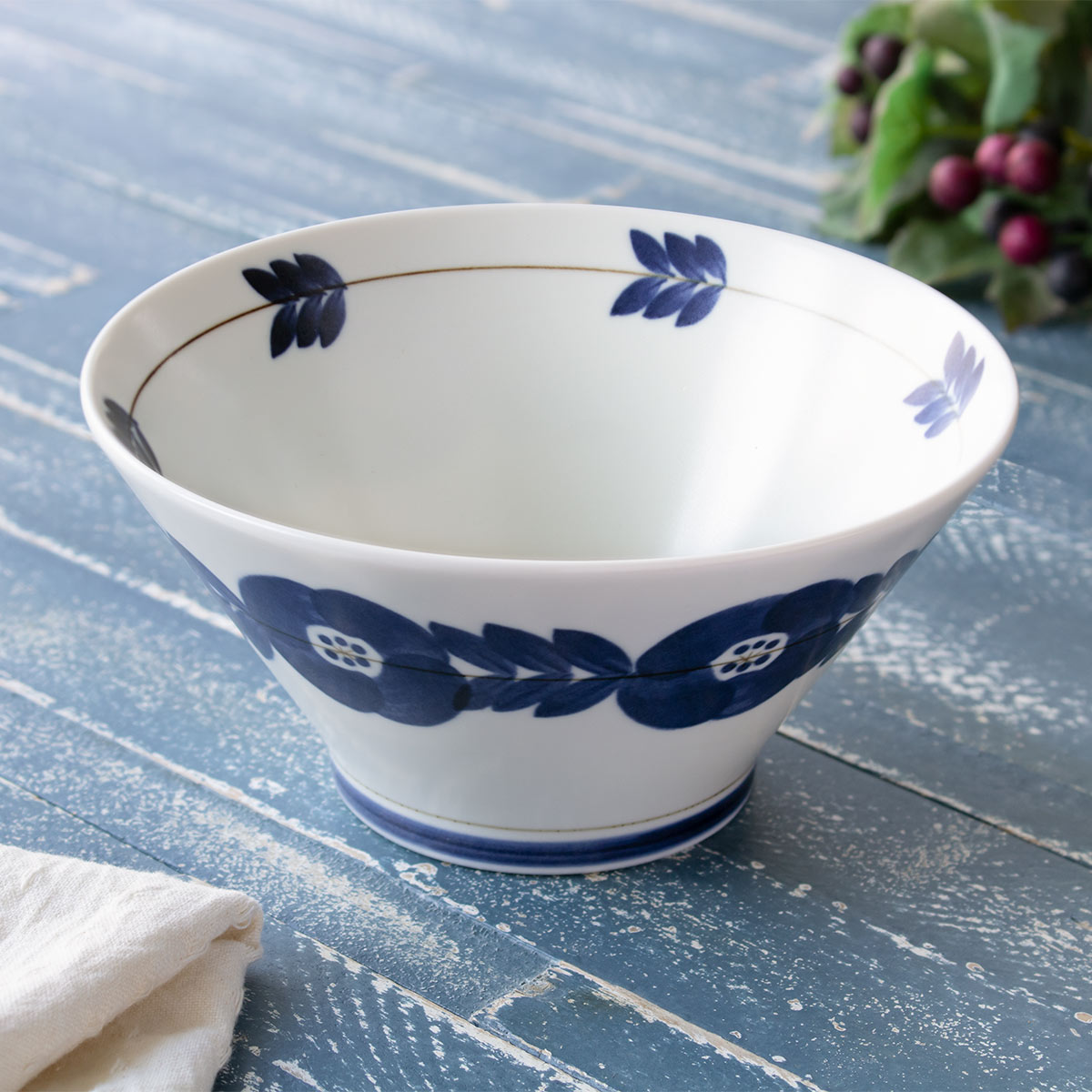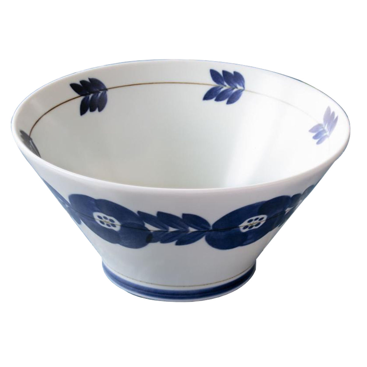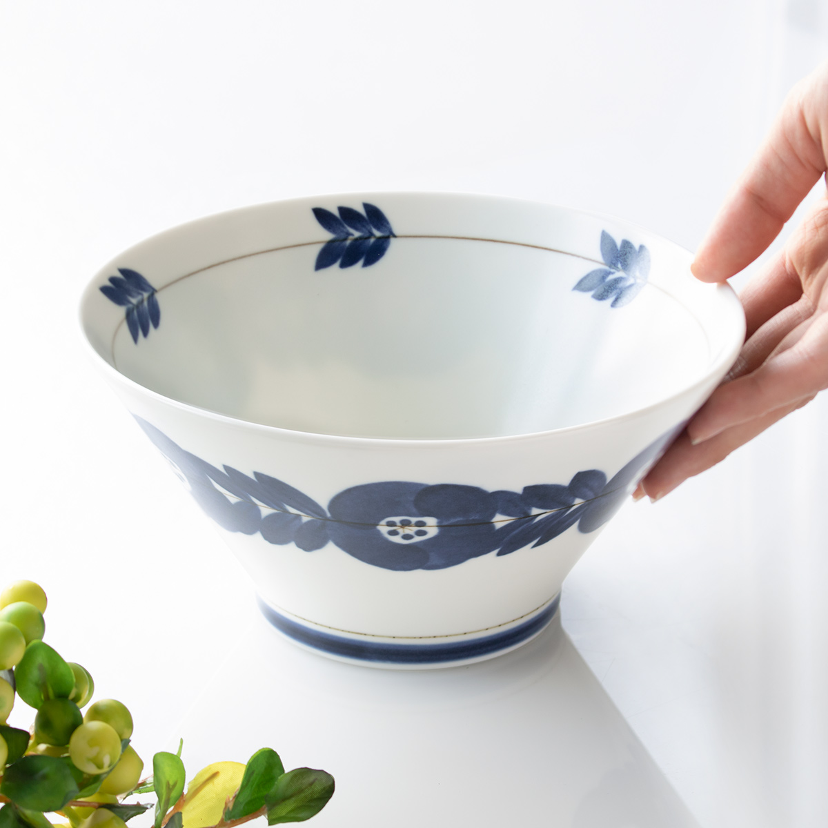 ボウル 18.5cm ブロッサム 磁器 美濃焼 ( 食洗機対応 電子レンジ対応 日本製 どんぶり 深型 鉢 ディープボウル 碗 丼 食器 うつわ 盛り鉢 手描き風 花 汁もの 煮物 サラダ おしゃれ 単品 1枚 ) 【ネイビー】