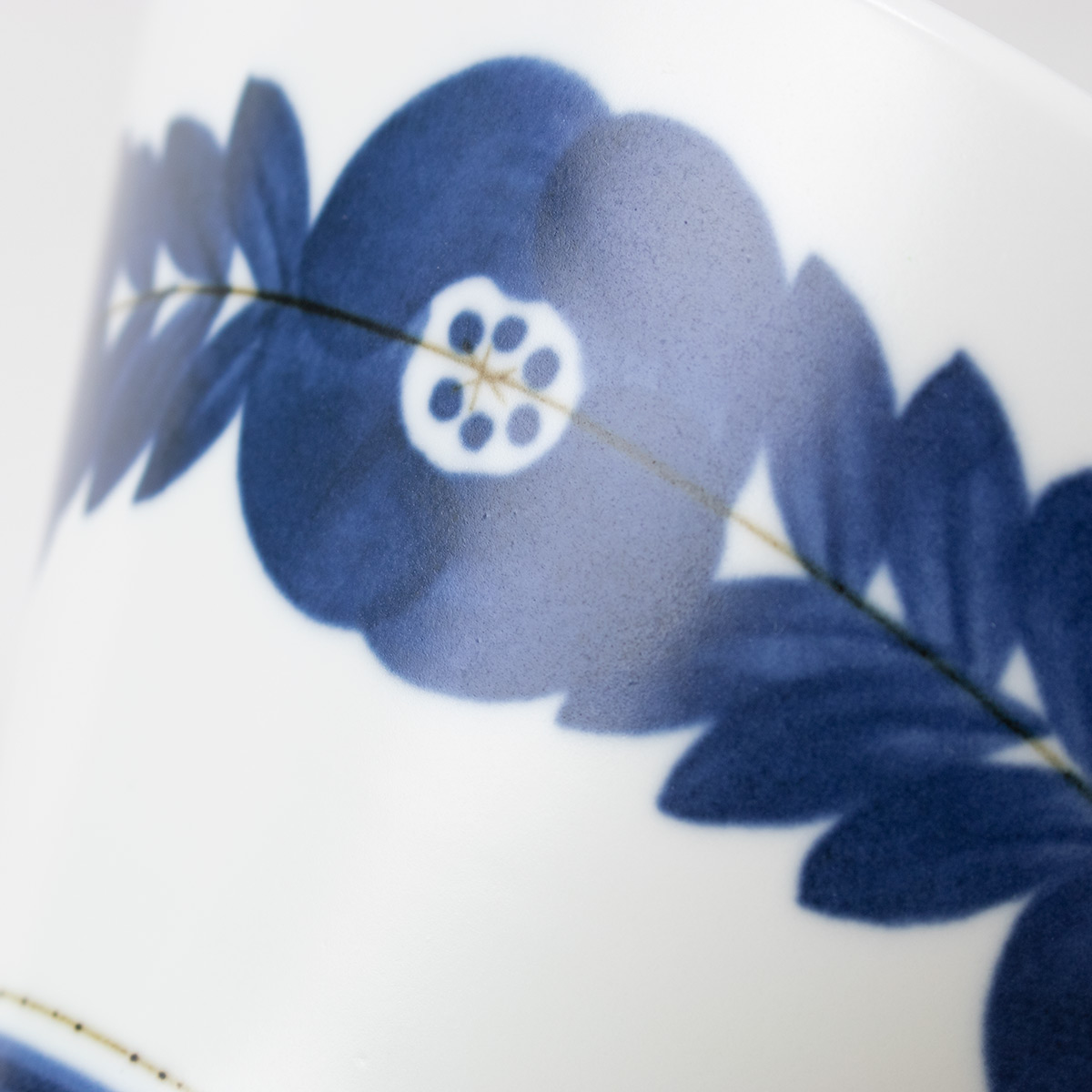 表面は光沢を抑えた、ややマットな質感です。水彩絵の具で描いたようなにじみや、色の重なりの濃淡が美しい、あたたかみのある雰囲気です。