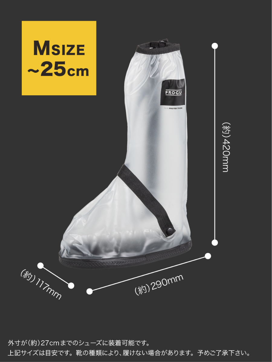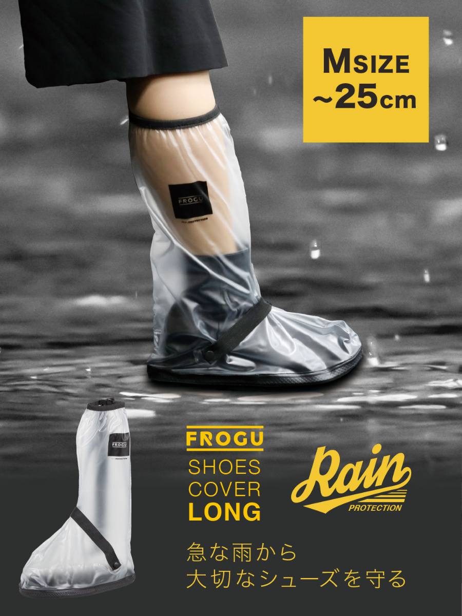 ●突然の雨から大切なシューズを守る「FROGUシューズカバーロング」Mサイズです。