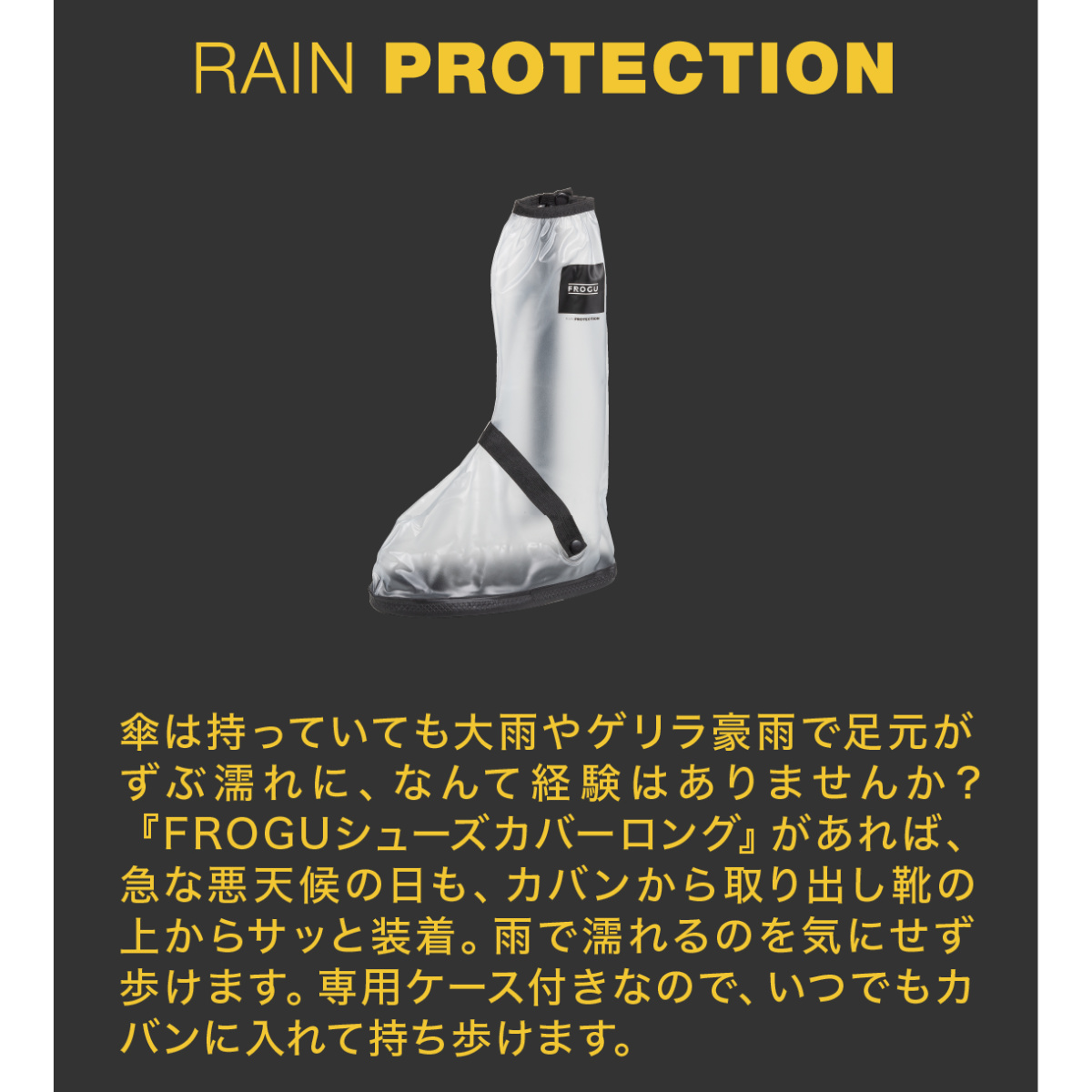 シューズカバー ロング Mサイズ FROGU ( レインシューズ レインブーツ 靴カバー 防水 靴 カバー 靴用 雨具 通勤 通学 アウトドア 雨 レイングッズ 携帯 泥汚れ防止 ファスナー式 滑り止め付き 収納ケース付き )
