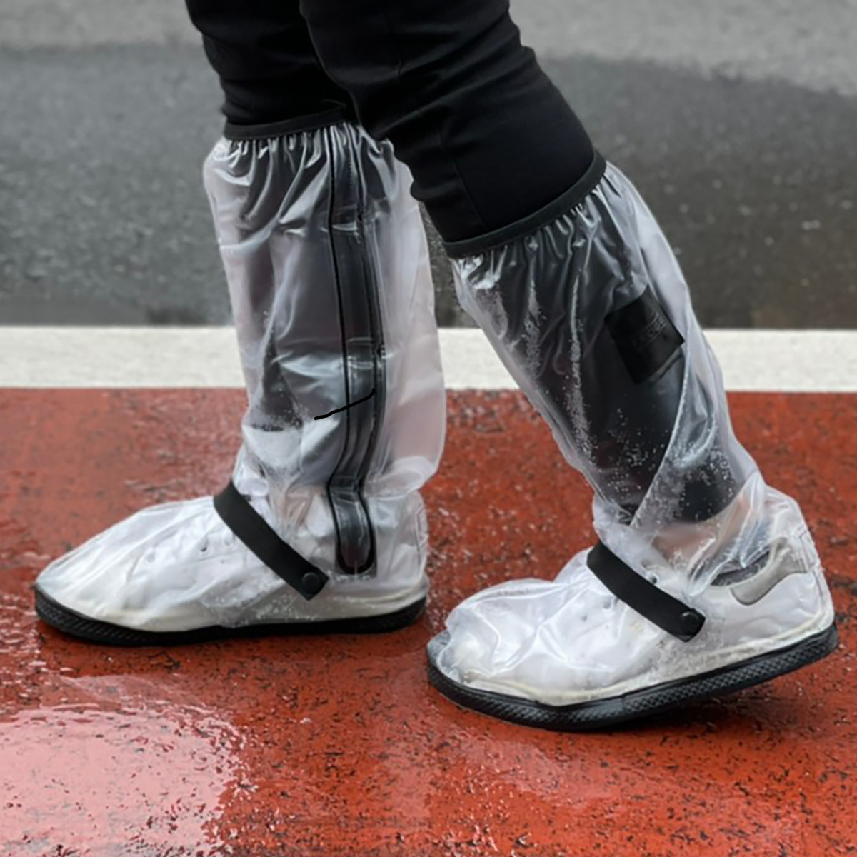 突然の雨でも、靴の上から装着するだけで大切な靴を雨水や泥から守ってくれる「シューズカバーロング・Mサイズ」です。ロングタイプで、濡れやすいズボンの裾もしっかり守れます。