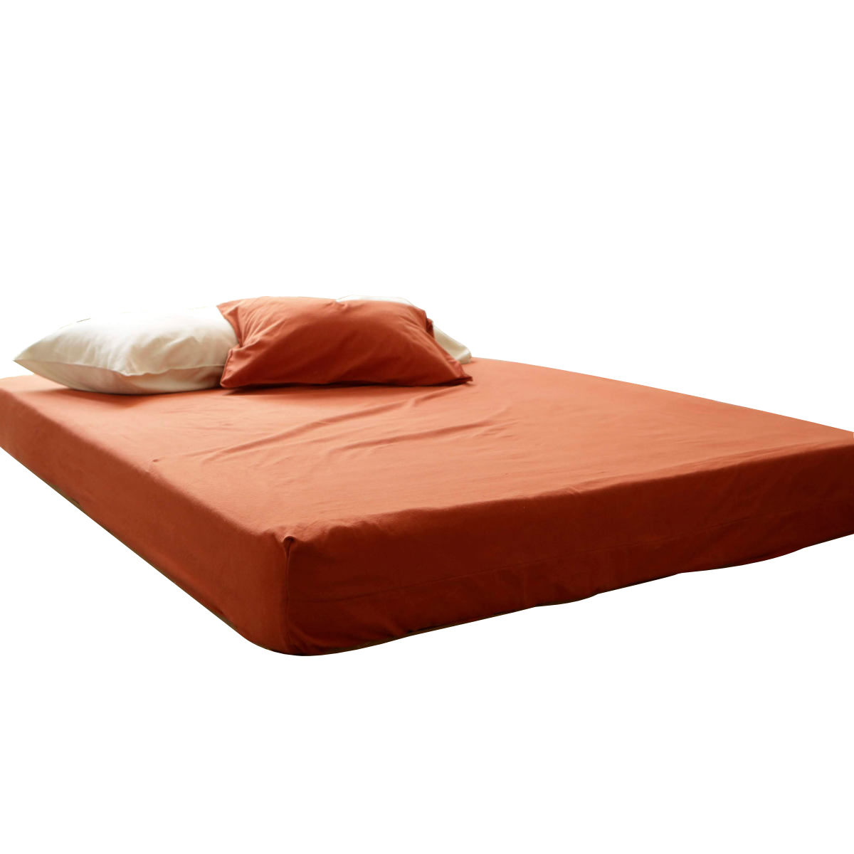 ボックスシーツ Fab the Home ダブル コットンフランネル 綿100% ( ファブザホーム マットレスカバー ベッドカバー ベッドシーツ 寝具 起毛素材 綿 継ぎ目なし ゴム入り ズレ防止 マチ30cm 天然繊維 ) 【テラコッタ】