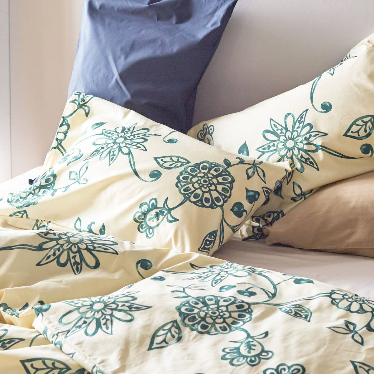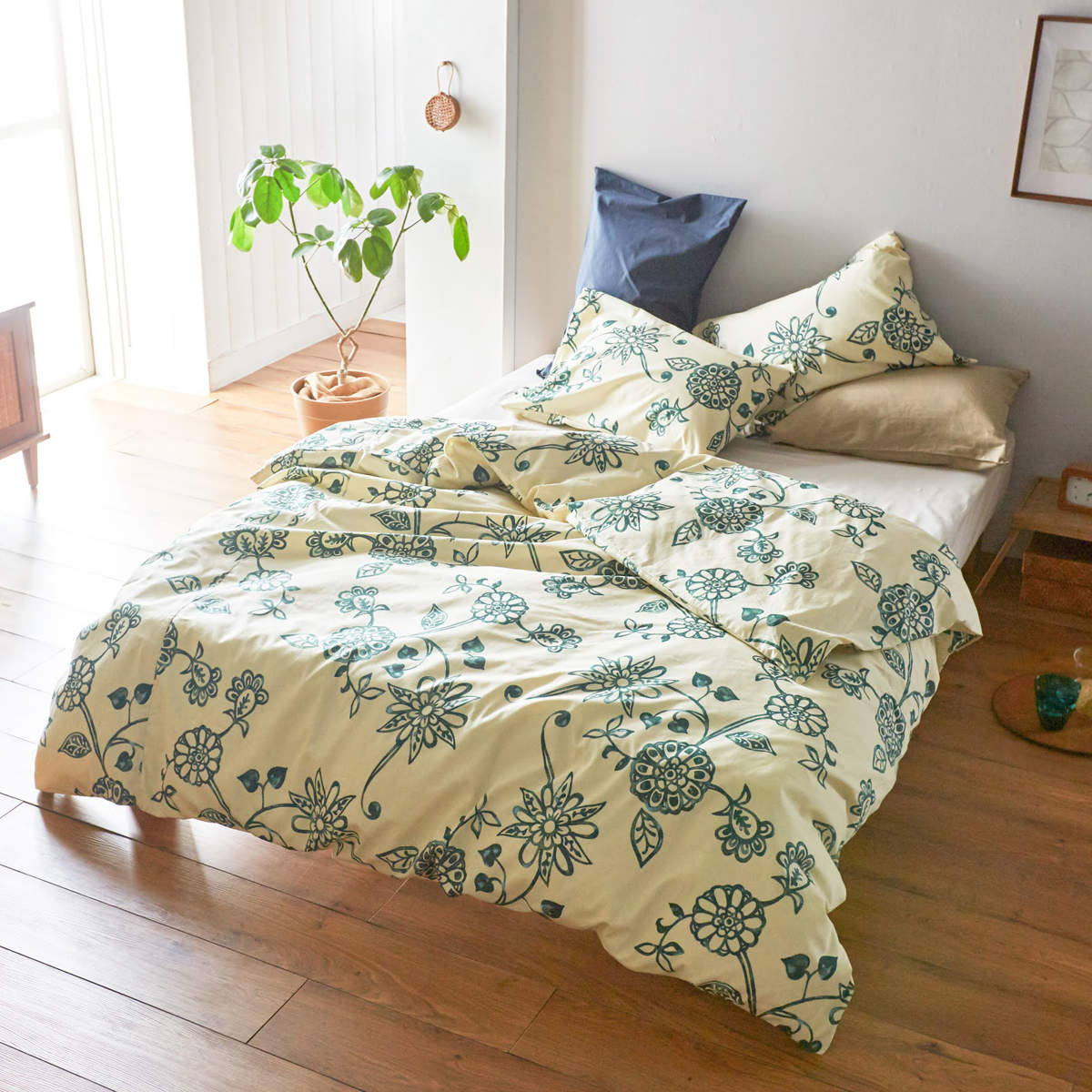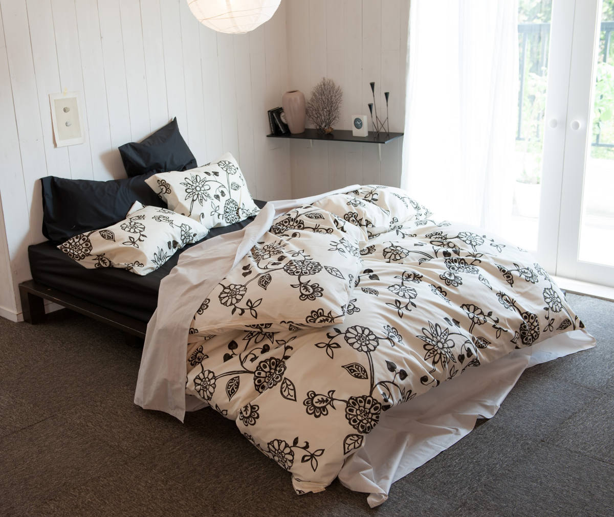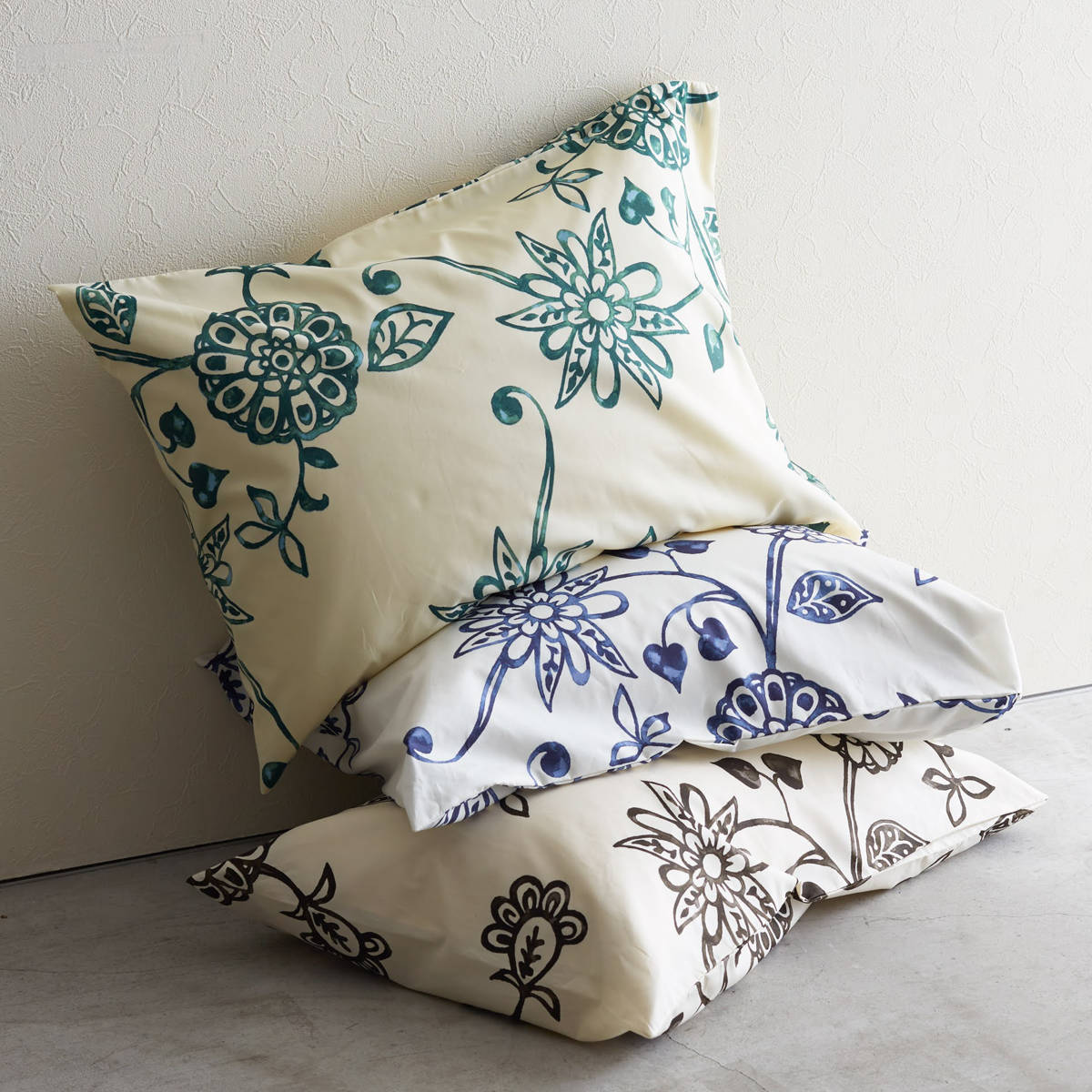 綿100%の生地に花柄をプリントした肌触りのいい枕カバーです。白を基調としたモノトーン配色の花柄なので派手過ぎず、シックな中にも華のある大人びた空間を演出してくれます。