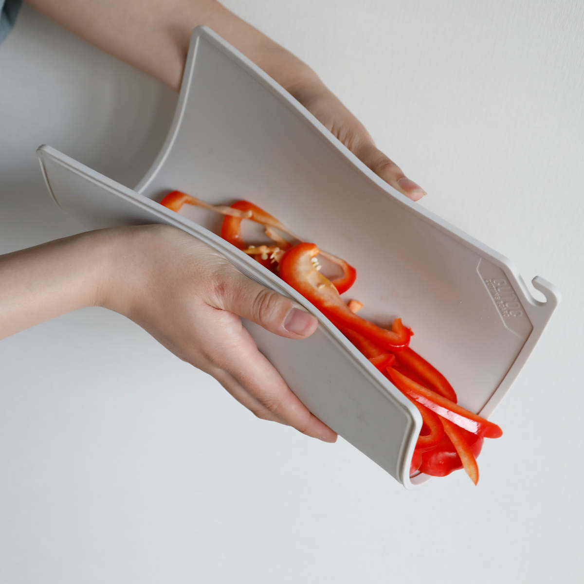やわらかい素材なので折り曲げることができ、切った食材をそのままお鍋に入れることが出来ます。