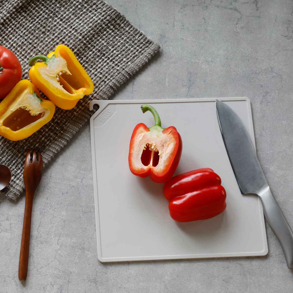 ●食卓にもそのまま置ける大きさのスクエア型のまな板です。