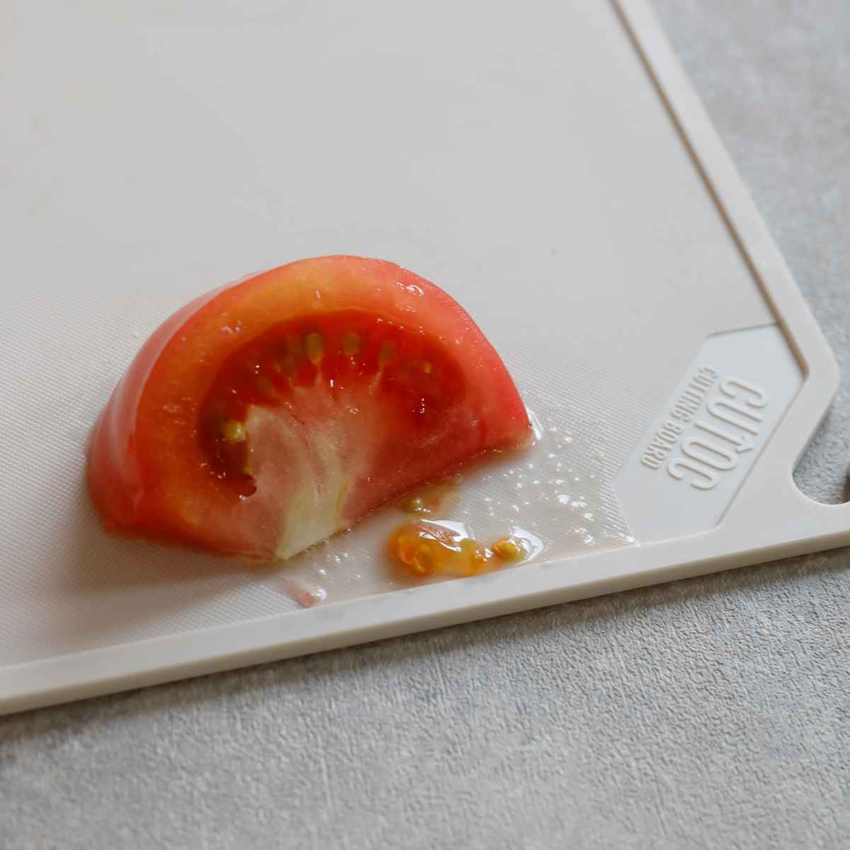 食卓にもそのまま置ける大きさのスクエア型です。切りたい方向に回転でき、長方形よりもコンパクトなまな板がほしい方におすすめです。