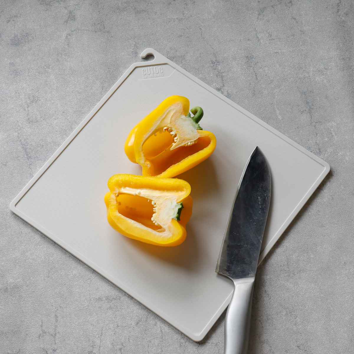 ゴムのような弾力と柔軟性を持ちつつ、プラスチックのような適度な硬さがあるTPU製のまな板です。復元性のある素材なので、傷が付いても菌が繁殖しにくく、速乾性もあるので衛生的に使えます。