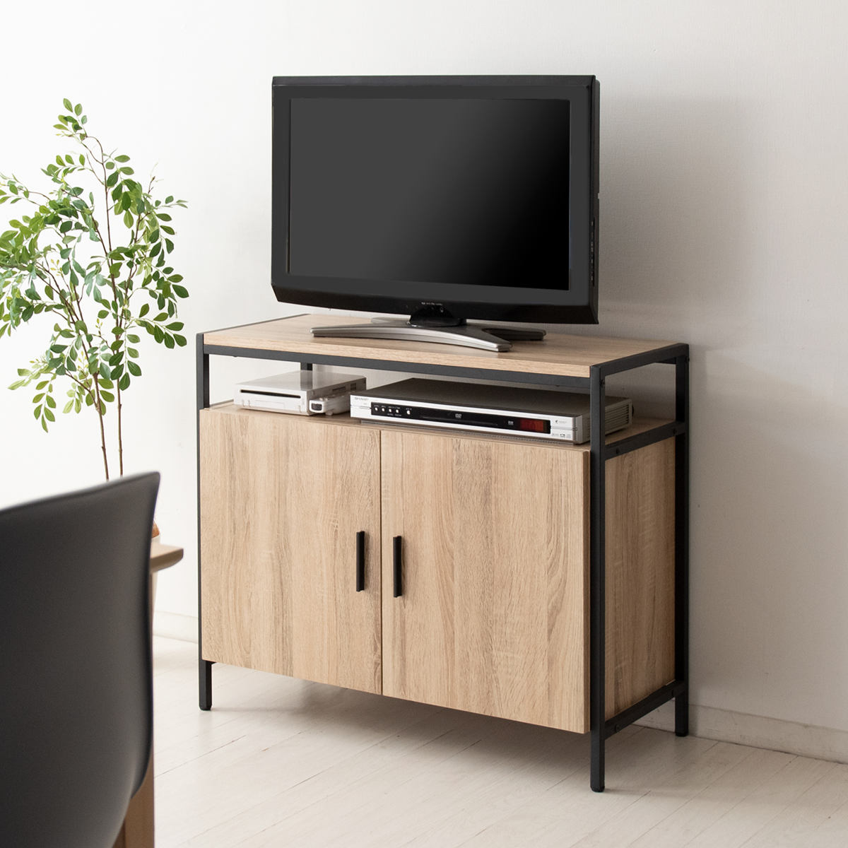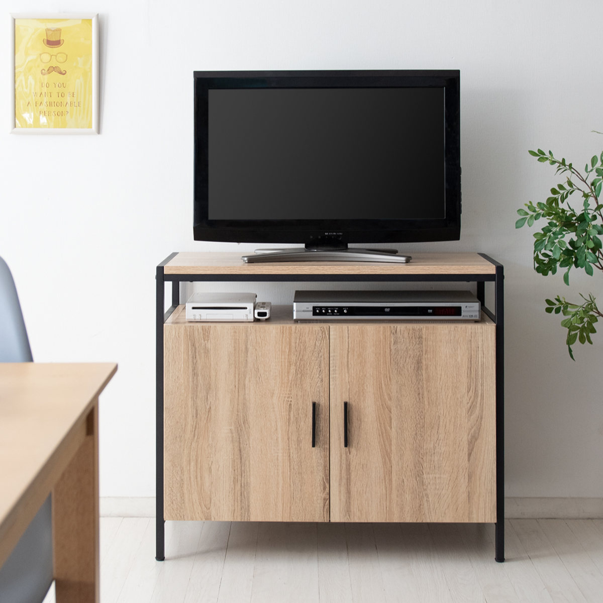 ダイニングや寝室にちょうど良い、ハイタイプテレビ台です。ダイニングチェアやベッドに座ってテレビが見やすい高さで、AV機器の収納に最適なオープンスペースと可動棚付きのキャビネット付きで収納力もばっちりです。ナチュラルなブラウンの木板とシックなブラックフレームのデザインで、様々なテイストのお部屋に馴染み、落ち着きのある空間を演出してくれます。