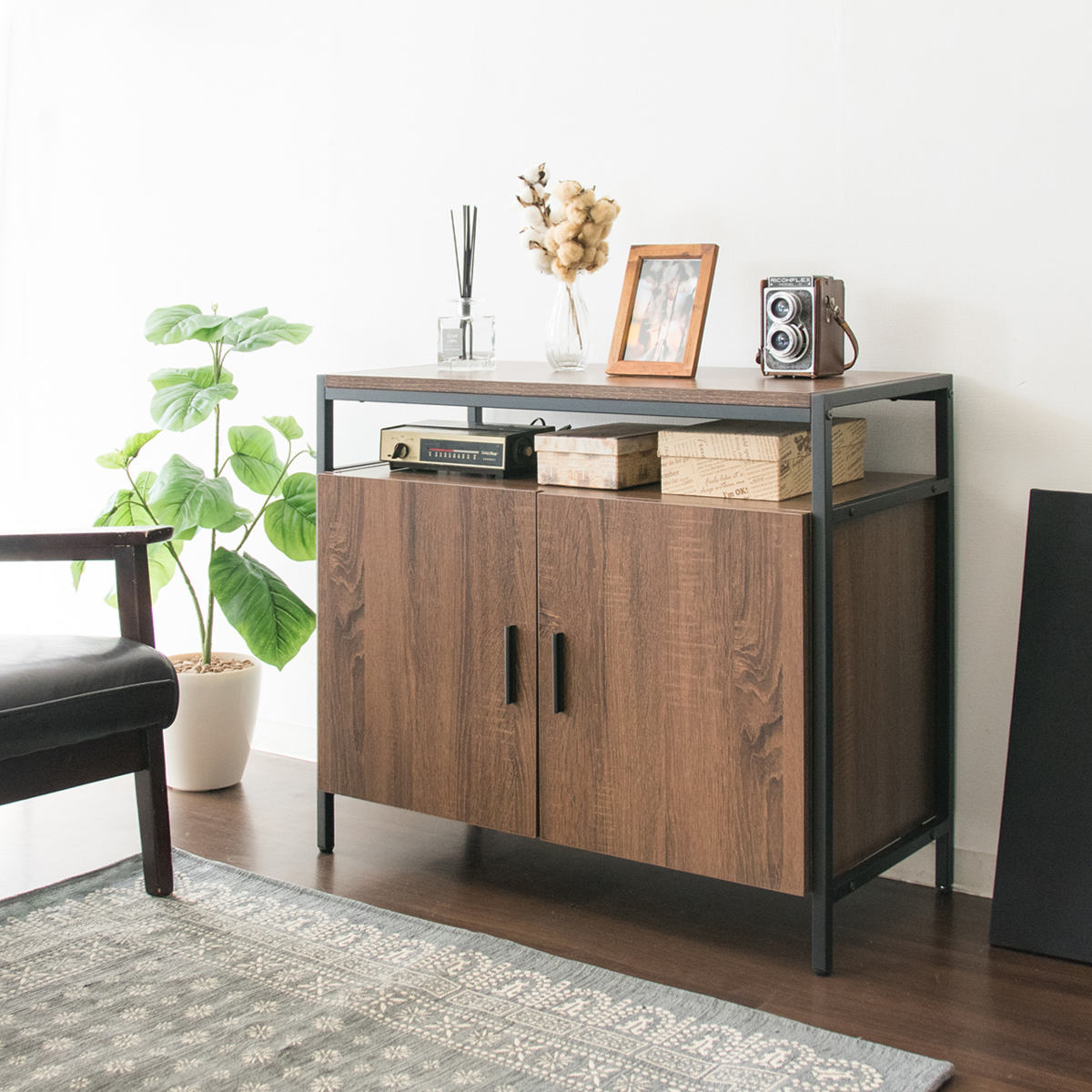 ●ナチュラルなブラウンの木板とシックなブラックフレームのデザインで、様々なテイストのお部屋に馴染みます。