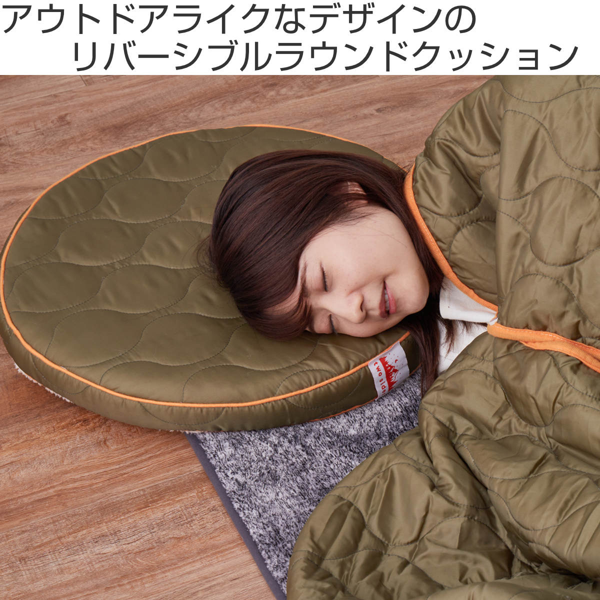 リバーシブルクッション 1個入 twosides 家でも外でも使えるファブリック ( クッション 座布団 アウトドア リバーシブル 円形 ボア 背あて 座クッション 背当てクッション 背もたれ 背当て キャンプ おしゃれ )【 グリーン 】