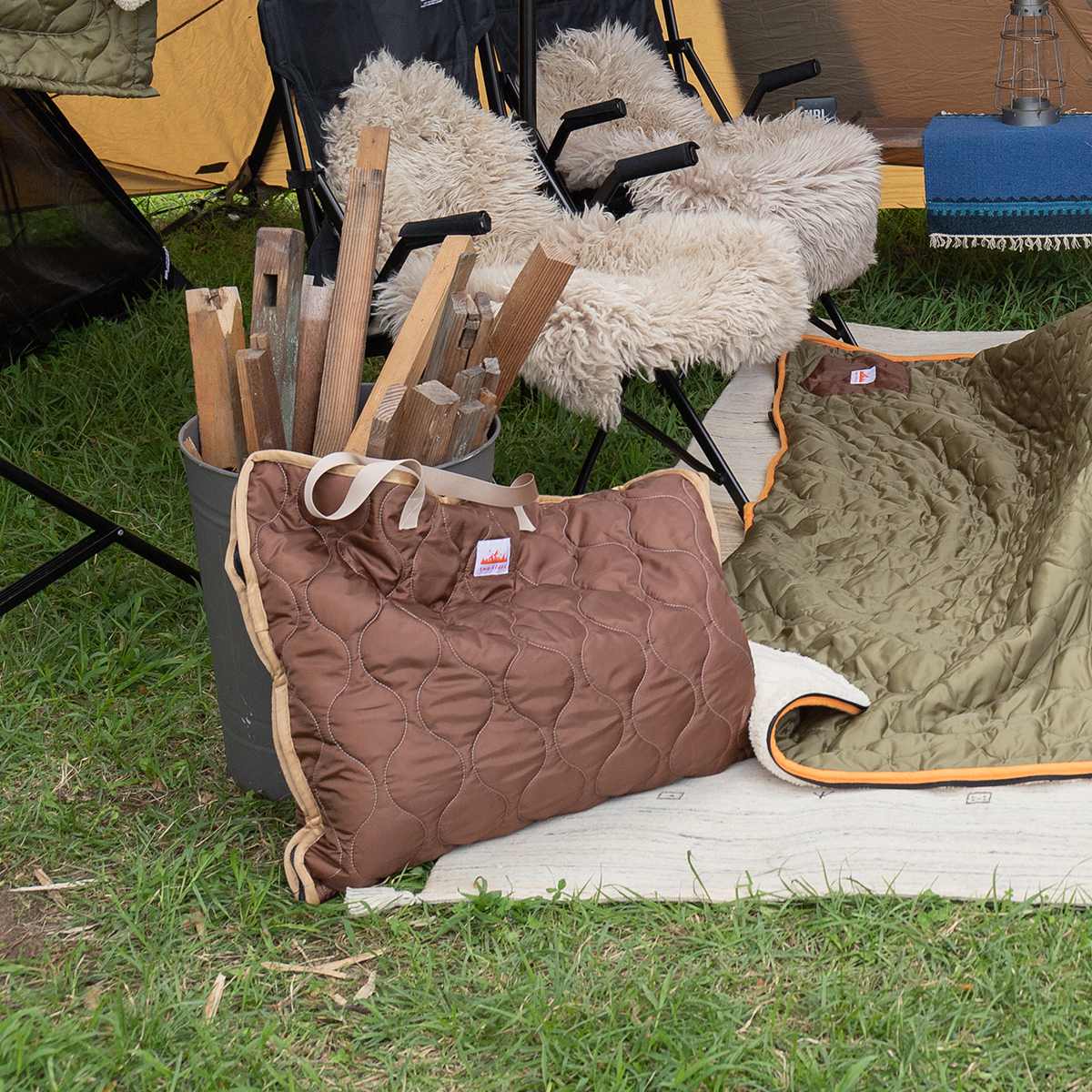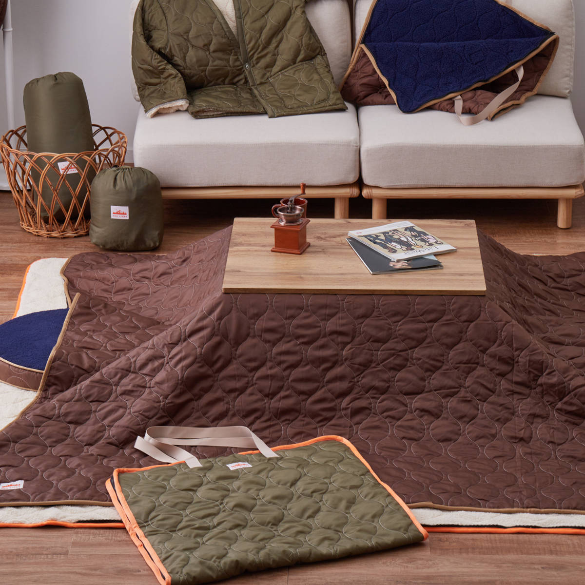 同シリーズにはリバーシブルクッションや、家でも外でも使えるはんてん、こたつ掛けにもなる2way寝袋などの取り扱いがあります。シリーズで揃えると統一感がでるのでおすすめです。