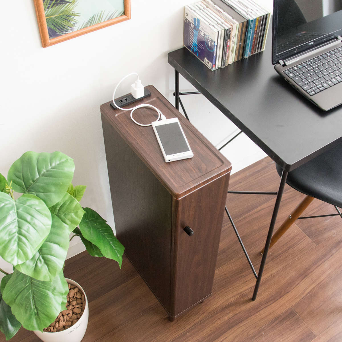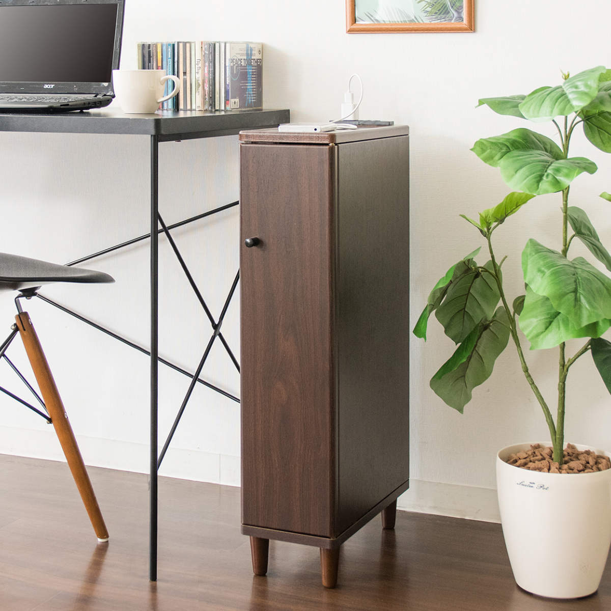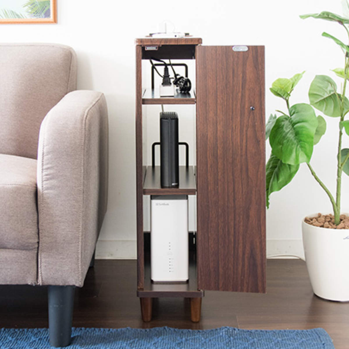 ルーターキャビネット スリム コンセント付 木目調 幅16cm ( モデムボックス 収納 ルーター モデム 収納棚 隠す収納 コンセント付き 隙間収納 モデム収納ボックス シェルフ ブラウン 脚付き おしゃれ )