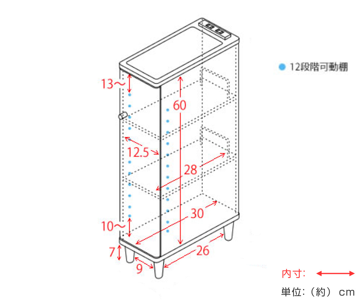 ●可動棚が2枚付属しており、収納物に合わせて高さ調節できます。