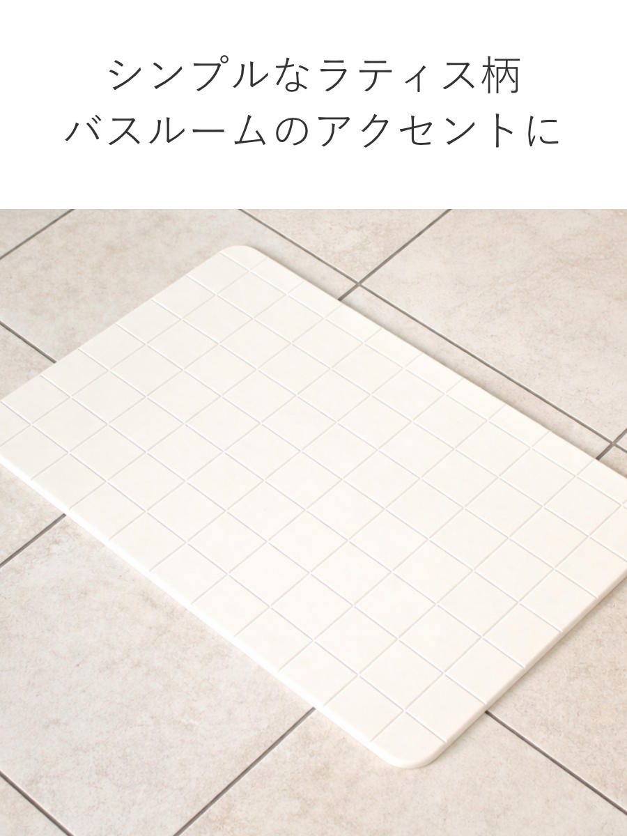 &NE バスマット 珪藻土 Lattice 60×40cm ( バス マット 珪藻土マット 速乾 吸水 速乾性 お風呂 浴室 長方形 アスベスト不使用 60 40 高吸水 足ふきマット 吸水性 お風呂マット 快適 清潔 安全 カビない 防ダニ ノンアスベスト ) 【ホワイト】
