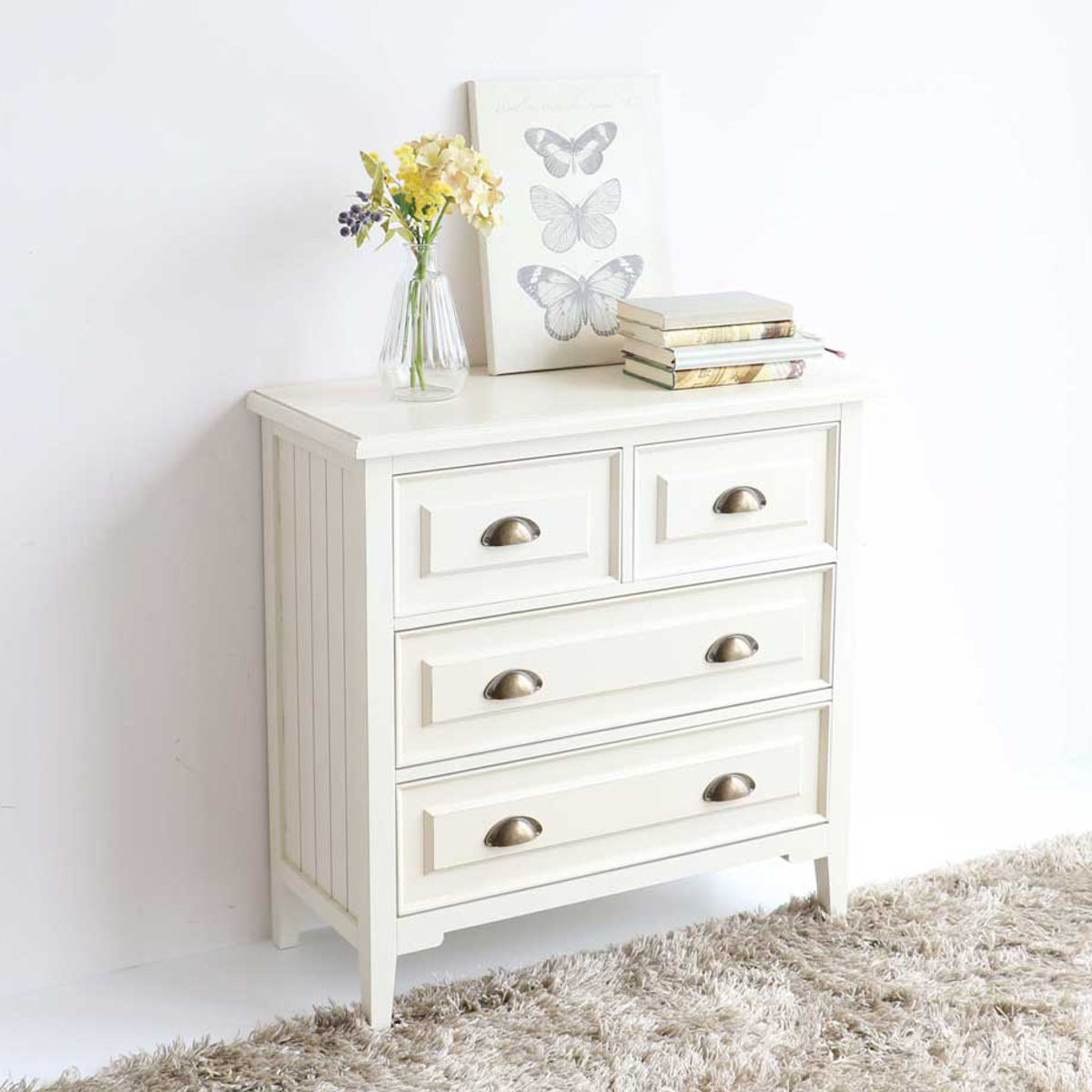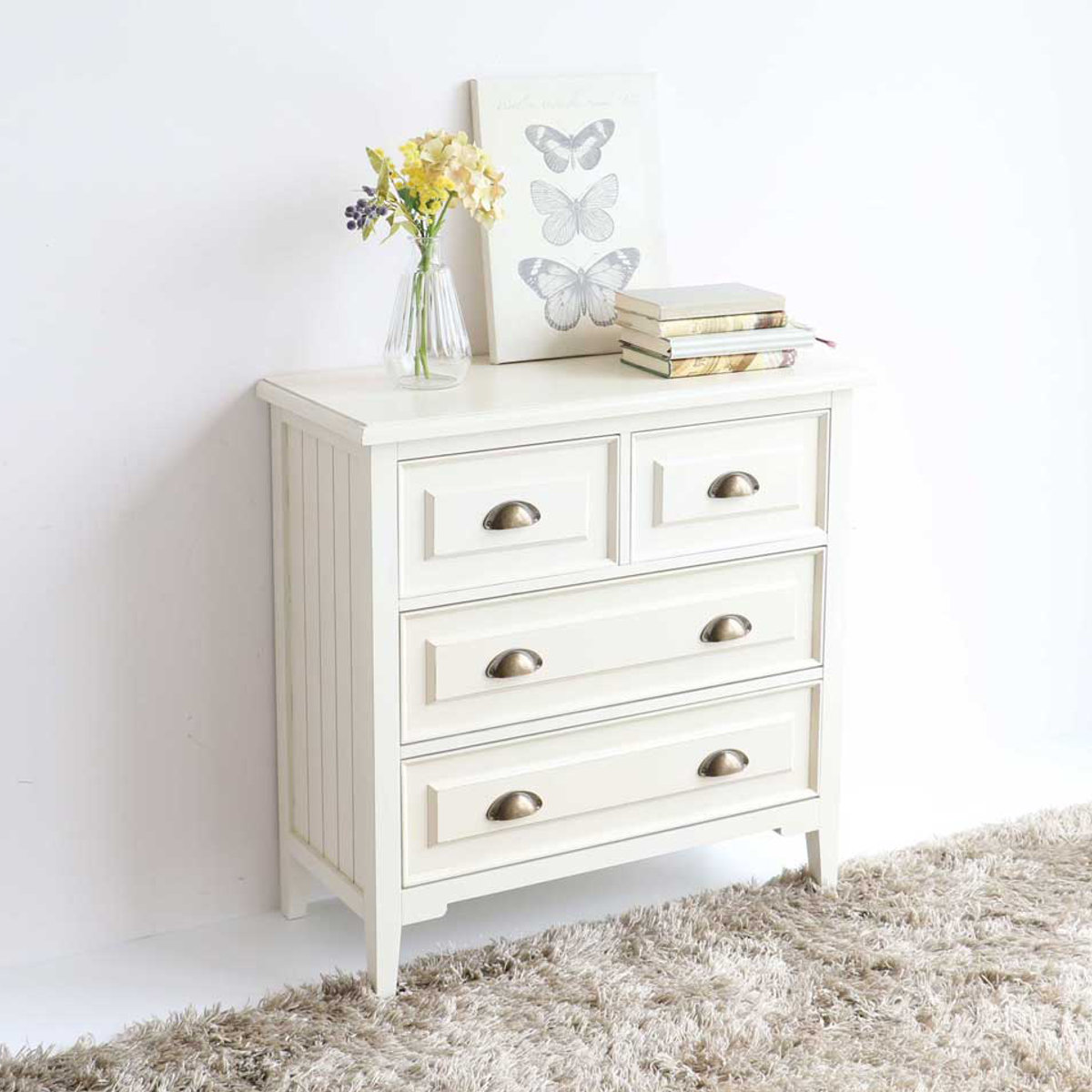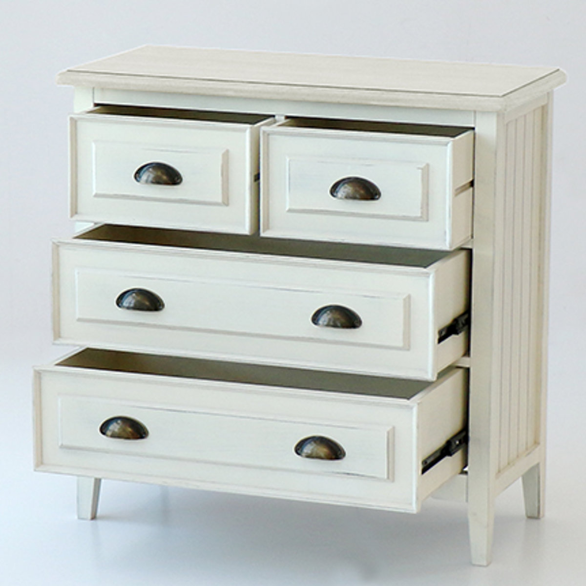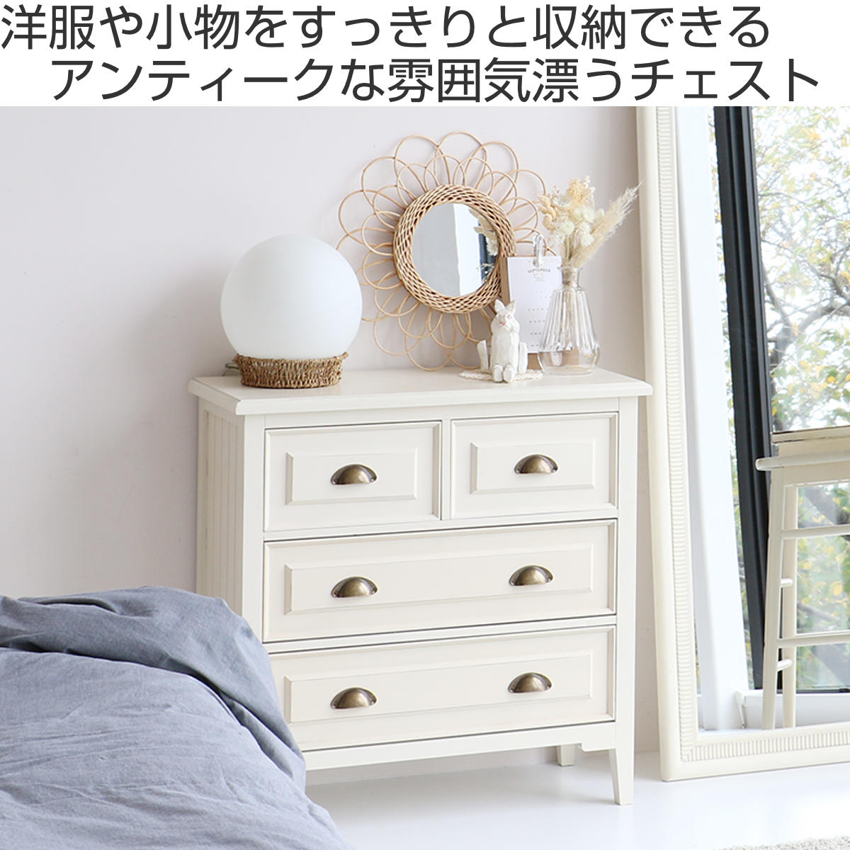 チェスト 3段4杯 天然木 フレンチカントリー調 ine 幅75cm ( リビングチェスト リビング収納 たんす 小物収納 木製 完成品 衣類収納 引出し収納 シンプル フレンチコーデ ホワイト おしゃれ )