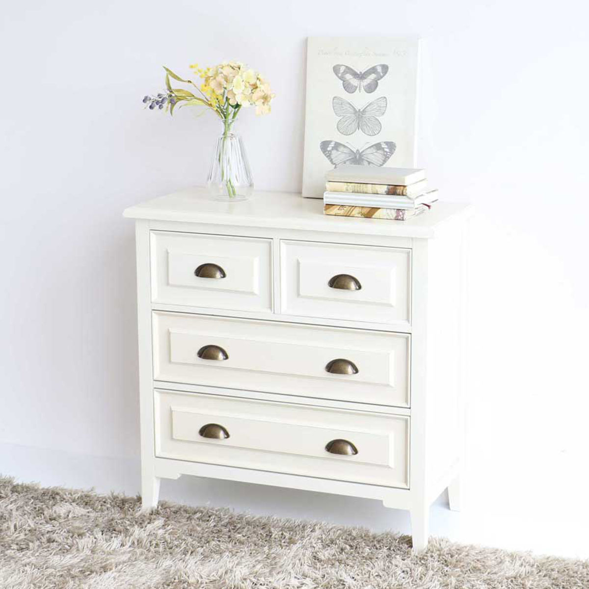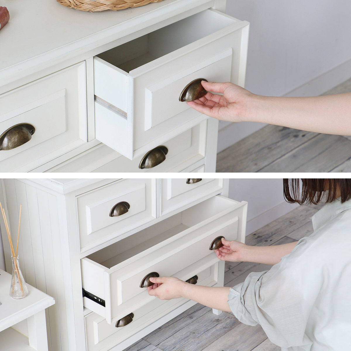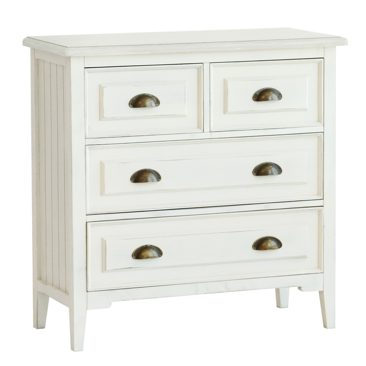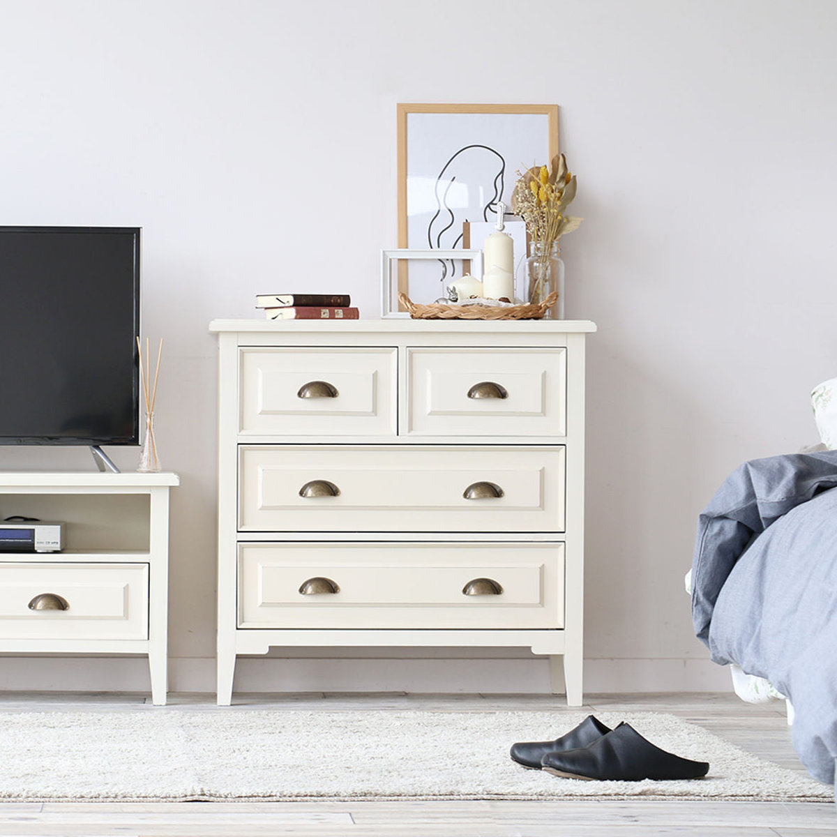 チェスト 3段4杯 天然木 フレンチカントリー調 ine 幅75cm ( リビングチェスト リビング収納 たんす 小物収納 木製 完成品 衣類収納 引出し収納 シンプル フレンチコーデ ホワイト おしゃれ )