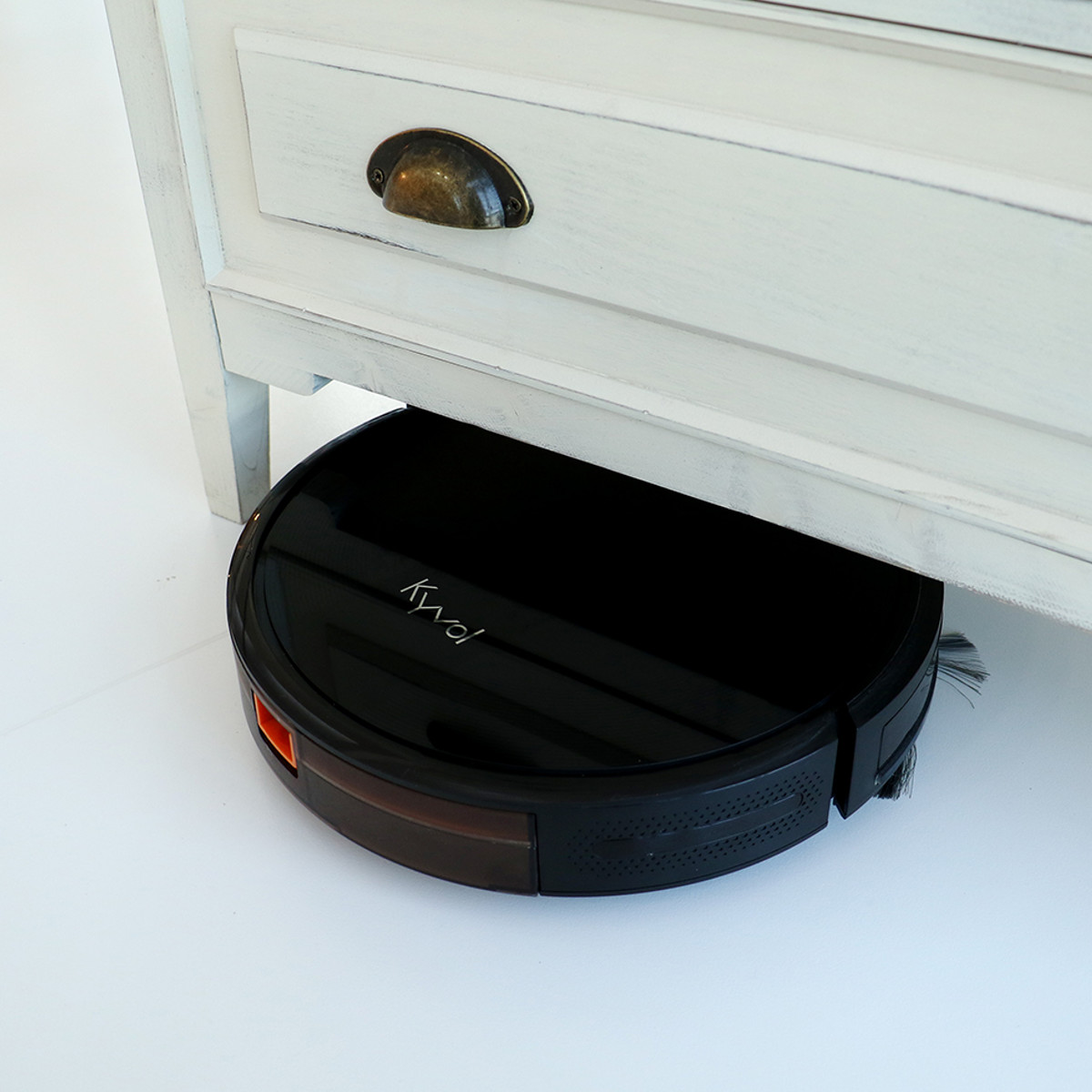 脚の高さは約10cmなので、一般的なお掃除ロボットや掃除機のヘッドが入ります。
